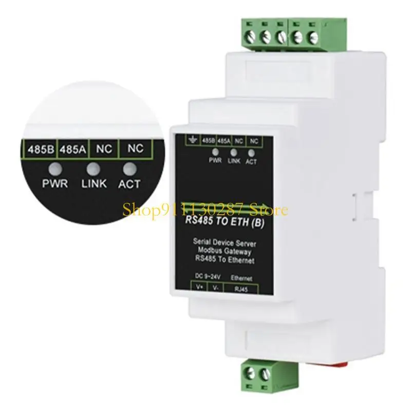 El módulo cuenta con puerto RS485 y Ethernet y utiliza terminales de tornillo para entrada de energía.