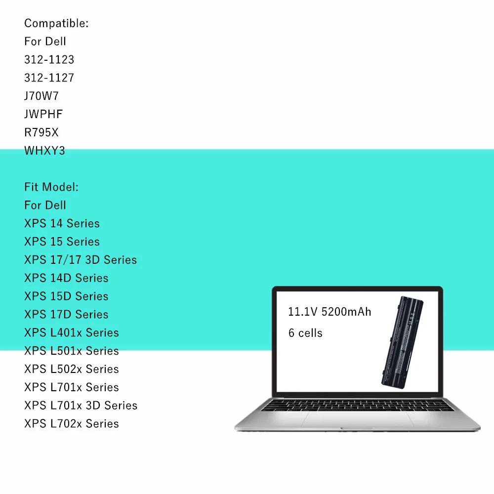 Comprar J70W7 batería del ordenador portátil para Dell JWPHF R795X WHXY3 XPS 14 15 17/17 3D L401x L501x L502x L701x L702x 312-1123 312-1127