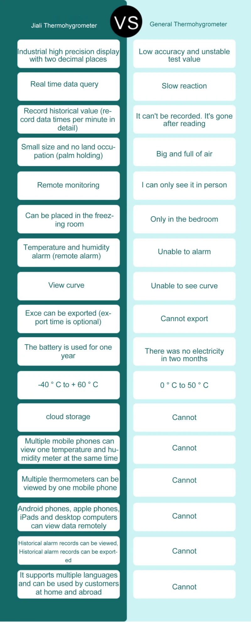 2. Si se combina con una puerta de enlace WIFI, puede consultar de forma remota la temperatura y la humedad desde varios teléfonos móviles y varios ordenadores, ver de forma remota las curvas históricas, y reciba de forma remota alarmas de temperatura y humedad fuera de rango desde múltiples teléfonos móviles y múltiples ordenadores. Una puerta de enlace puede conectar 20 termohigrómetros. Después de conectarse a WiFi, puede consultar datos entre provincias, fronteras y teléfonos móviles.