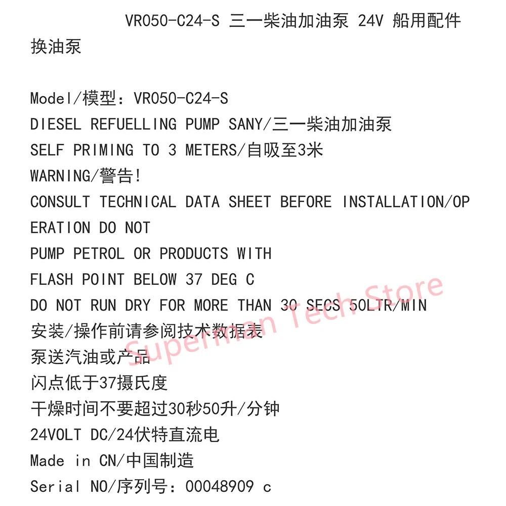 Bomba de repostaje diésel para JABSCO VR050-C24-S Sany, accesorios marinos de 24V, repuesto de bomba de aceite
