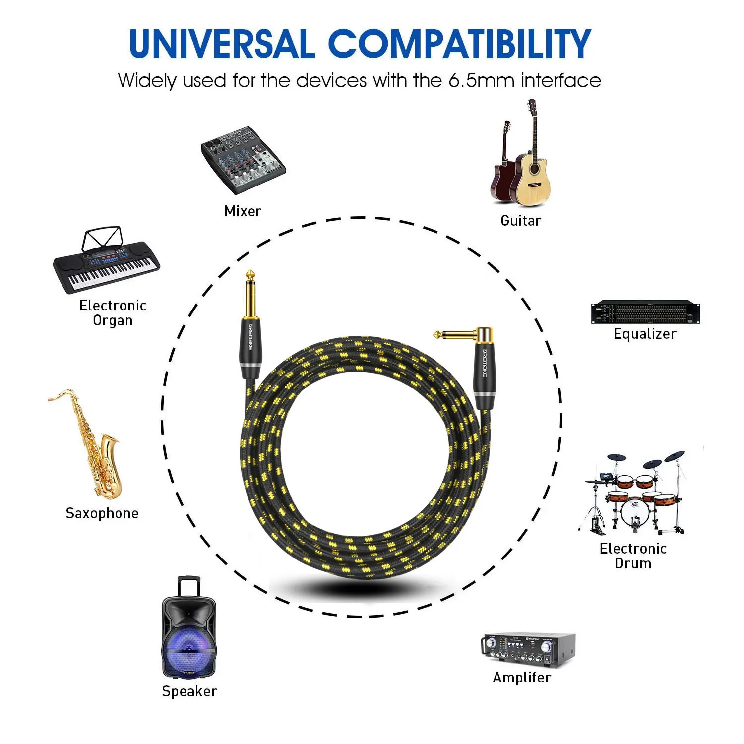 ⭐El Cable de guitarra eléctrica DREMAKE 6,35mm TS está equipado con conectores rectos de 1/4 pulgadas, plug and play, responde rápidamente, ofrece transmisión de audio bidireccional. Flexible compatible con guitarra eléctrica, bajo, amplificador, altavoz, teclado, mandolina eléctrica, pedales de efectos, micrófono, efector, ecualizador, tambor, mezclador, afinadores, saxofón, violín, etc. La longitud moderada se adapta fácilmente a más condiciones, es una opción maravillosa para karaoke, audio de escenario profesional, cine en casa, Sala de música.