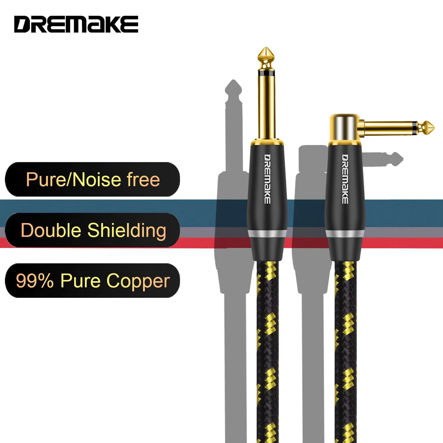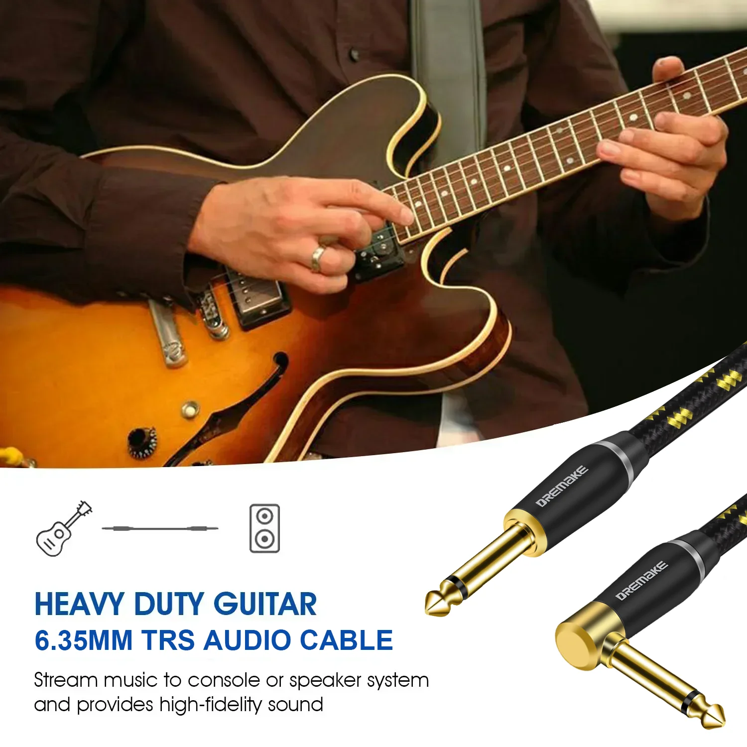⭐Material de calidad: duradero y estable: el cable del amplificador de guitarra DREMAKE TS Adopta conectores chapados en oro de 24K, lo que garantiza una alta estabilidad, alta velocidad, sin pérdidas y conexión sin ruido. La carcasa de metal es resistente al desgaste, anticorrosión y protección sólida. Conductor central de cobre libre de oxígeno 24AWG 4N (OFC) para alta fidelidad, calidad de sonido pura. Los enchufes estándar TS de 6,35mm tienen una compatibilidad excepcional que conecta sus dispositivos firmemente y le asegura disfrutar de una música maravillosa.