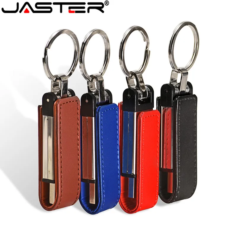 Comprar JASTER-Llavero de cuero y metal USB 2,0, unidad flash de 4GB, 8GB, 16GB, 32GB, 64GB, disco de almacenamiento móvil, Memoria personal