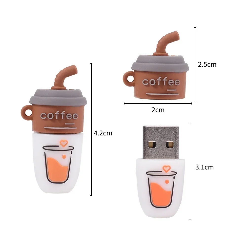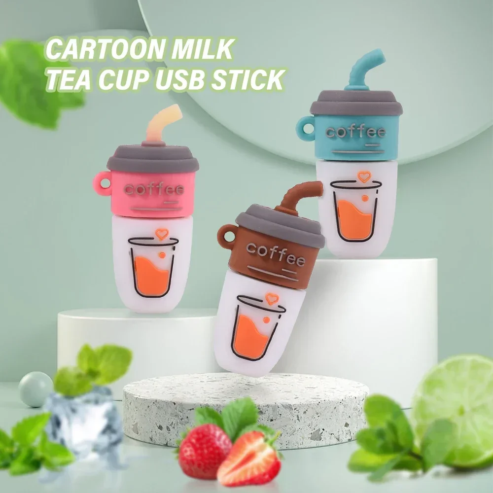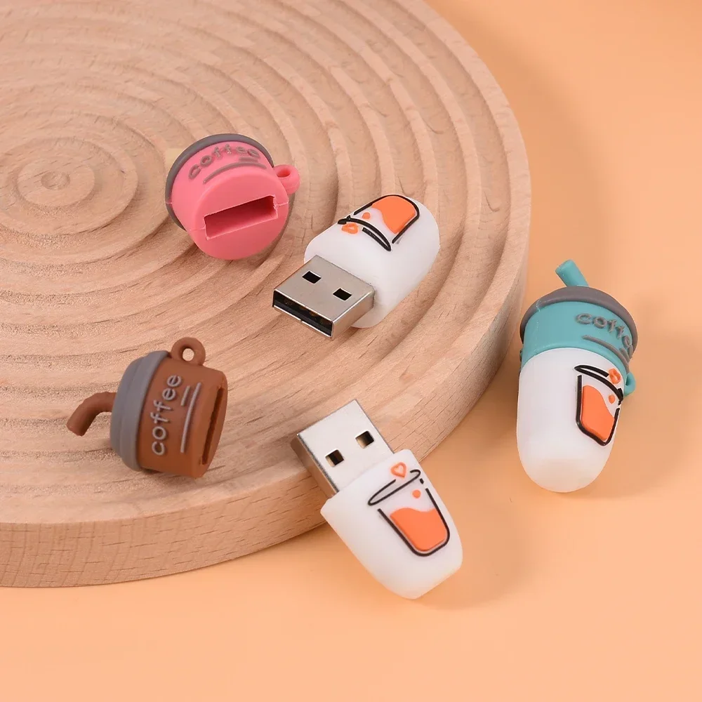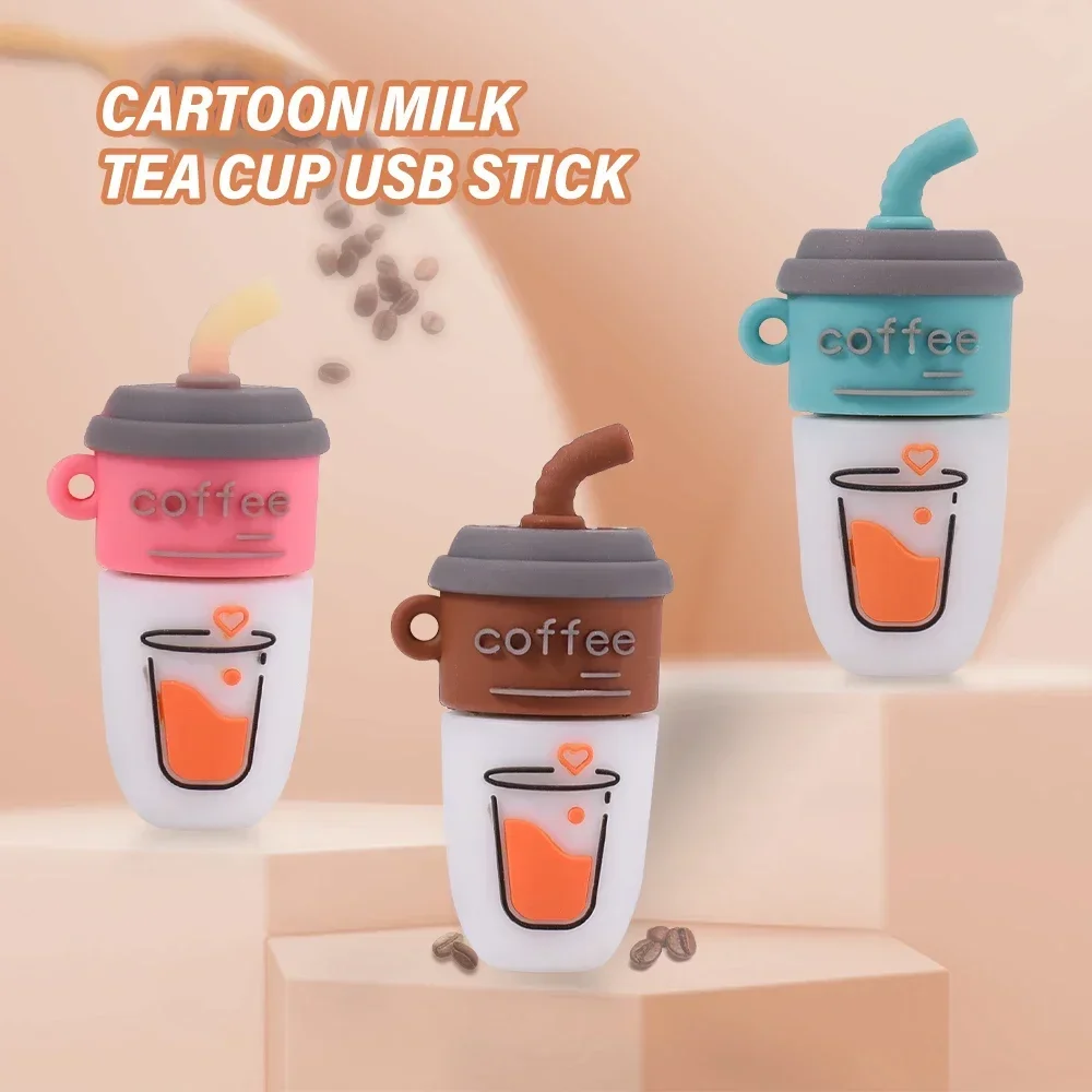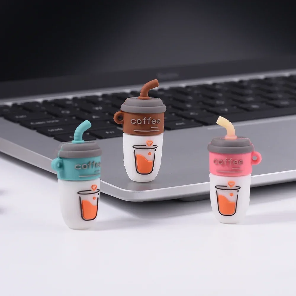 JASTER Mini Milk Tea Cup USB Flash Drive 128GB brown Cartoon Memory stick 64GB Cartoon USB Stick 32GB Silicone U Disk 16GB 8GB 4GB