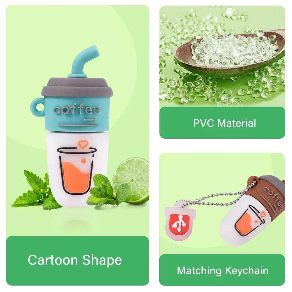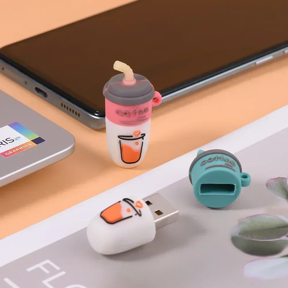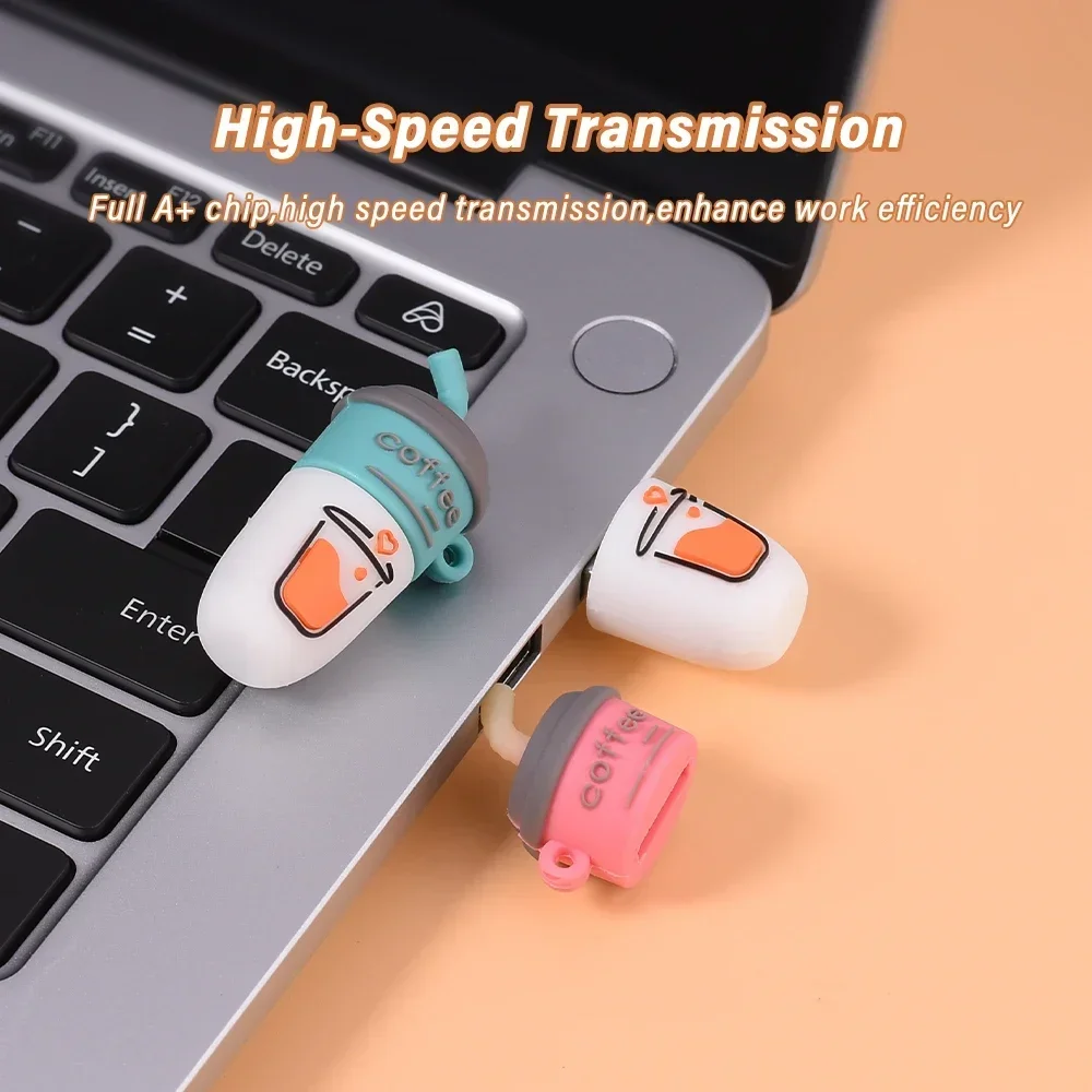 JASTER Mini Milk Tea Cup USB Flash Drive 128GB brown Cartoon Memory stick 64GB Cartoon USB Stick 32GB Silicone U Disk 16GB 8GB 4GB