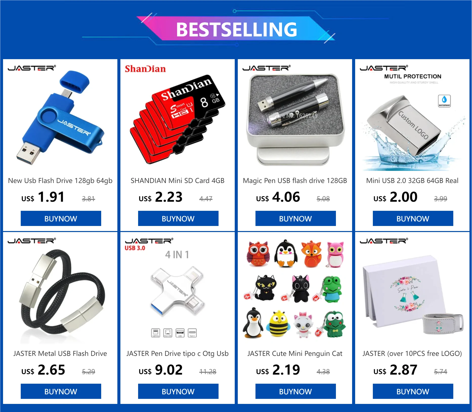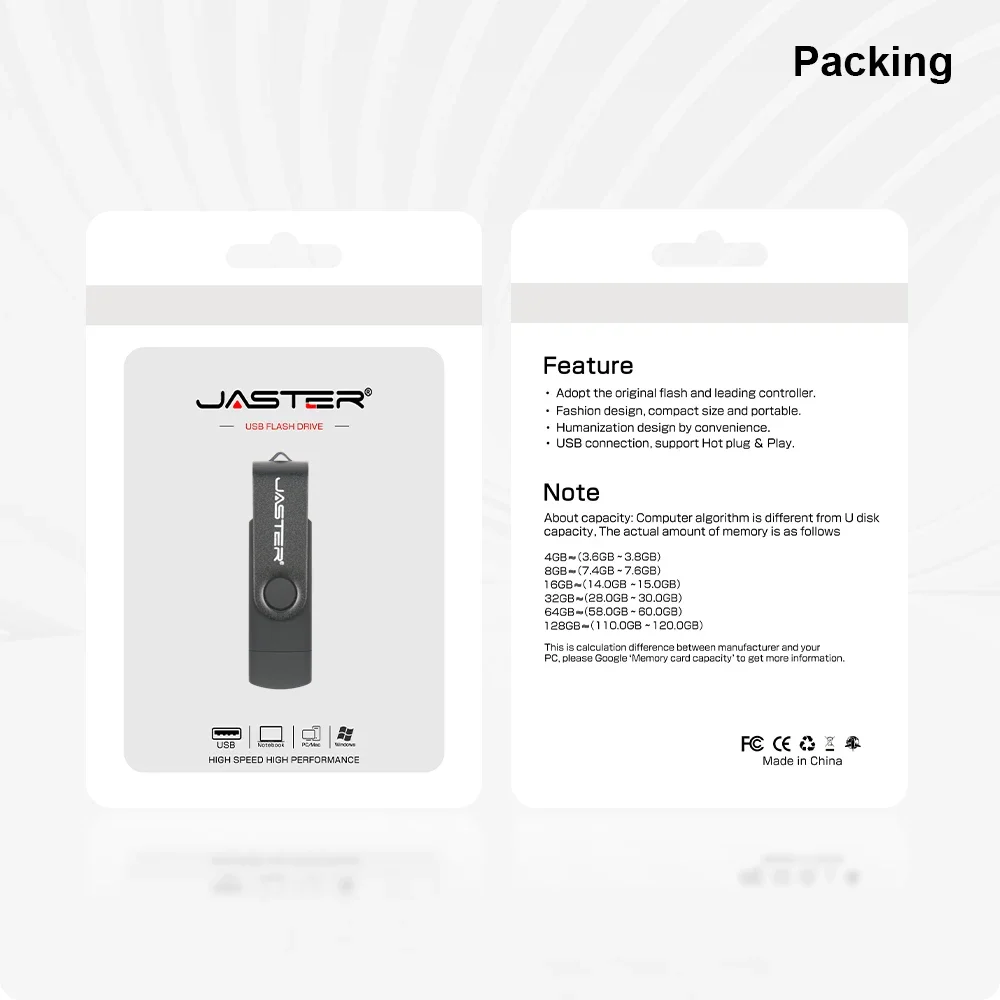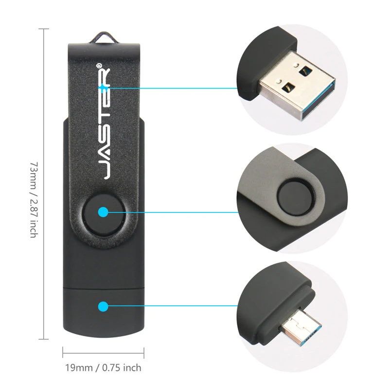 Comprar JASTER OTG USB Flash Drive 2,0 Micro interfaz + adaptador tipo C gratuito llavero 32GB Memory Stick logotipo personalizado gratis regalo de negocios