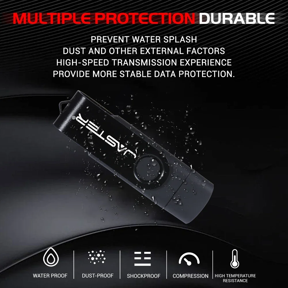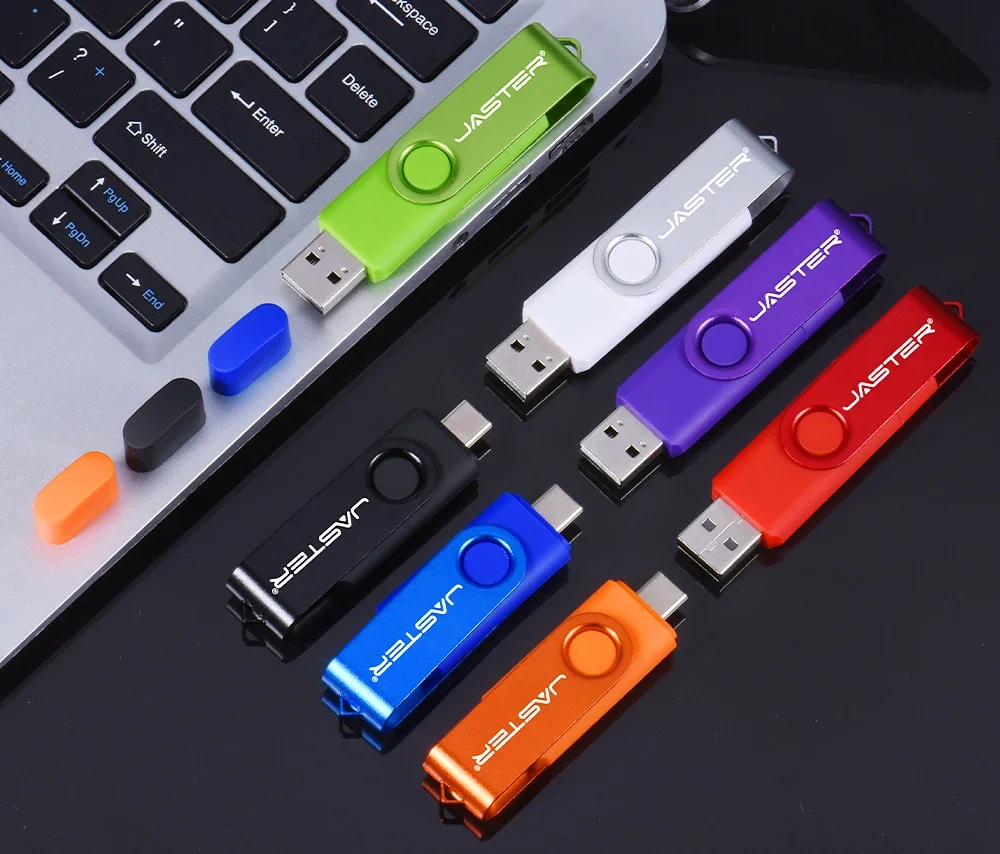 JASTER TYPE-C Unidad flash USB de alta velocidad 2.0 128GB 64GB Unidad de bolígrafo giratoria negra con llavero Memory Stick 2 en 1 regalo de empresa