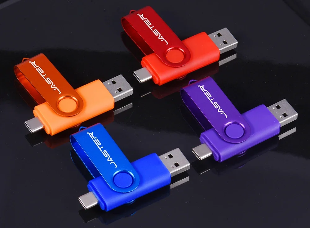Comprar JASTER TYPE-C Unidad flash USB de alta velocidad 128 GB 64 GB Unidad de bolígrafo giratoria negra con llavero Memory Stick 2 en 1 Regalo de negocios