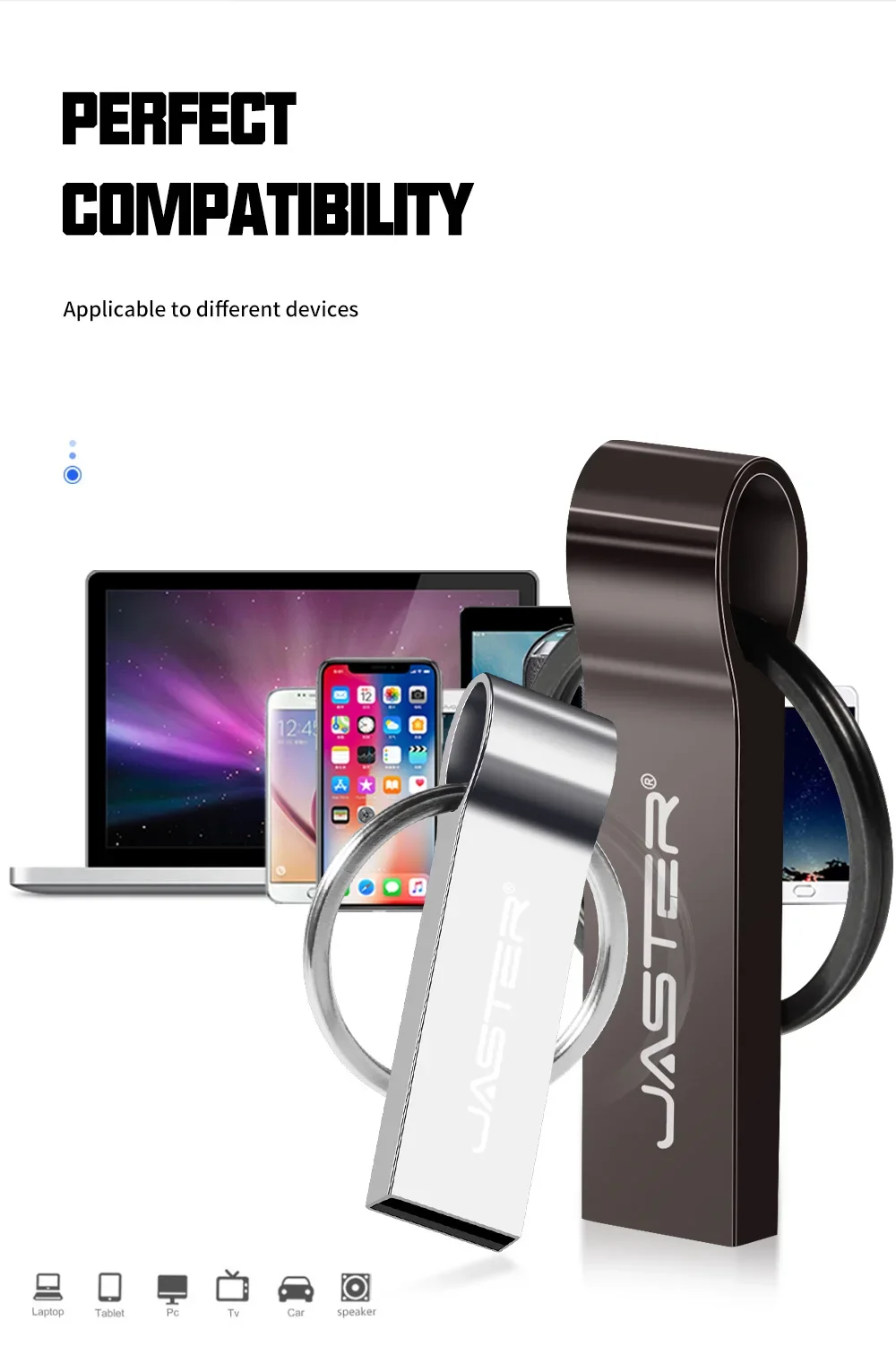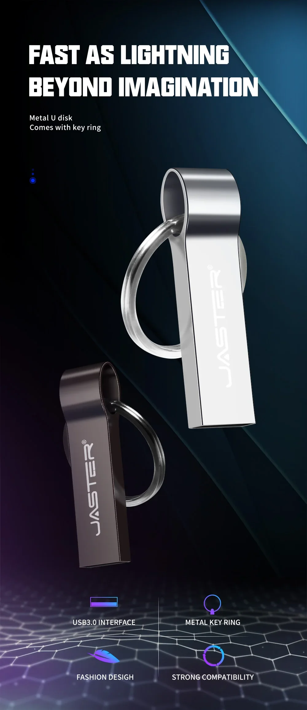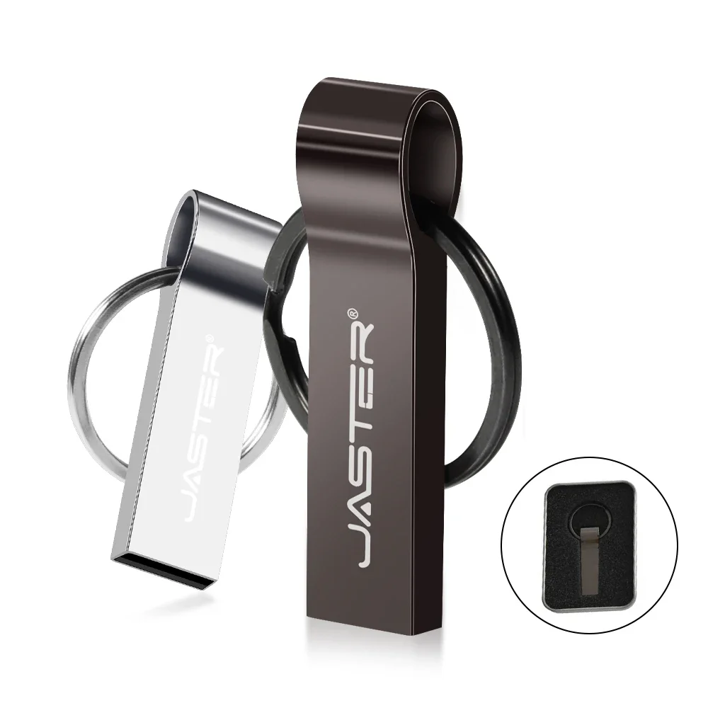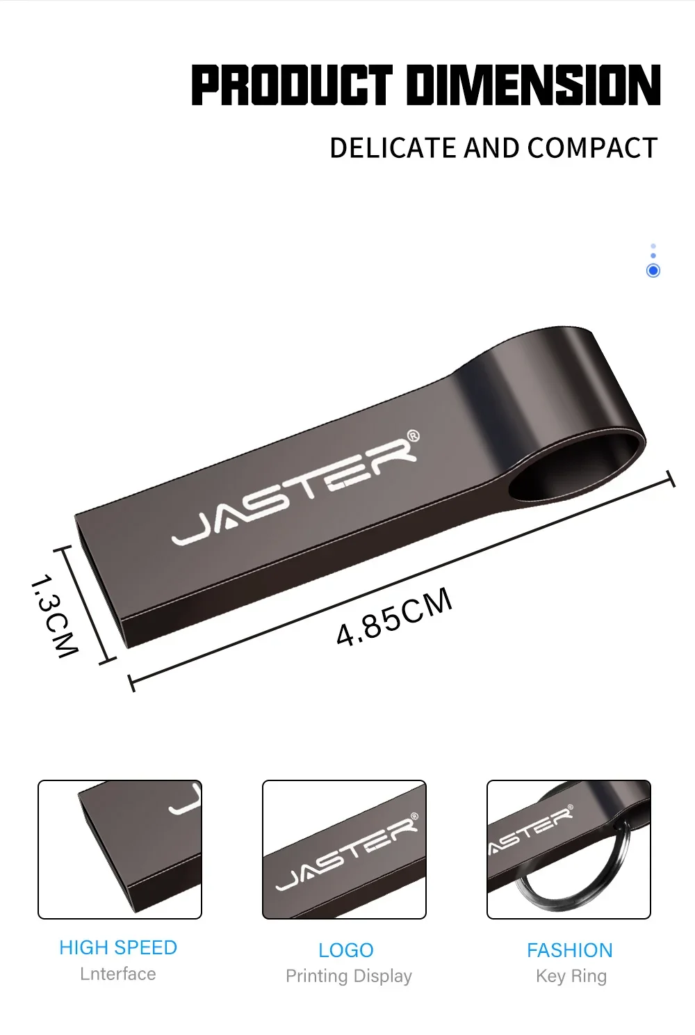 JASTER-Memoria USB 3,0 de alta velocidad, 128GB, Memoria con logotipo personalizado gratis, 64GB, pendrive resistente al agua, 32GB, disco U de metal plateado, 16GB, grabado láser, almacenamiento externo, 8GB, 4GB
