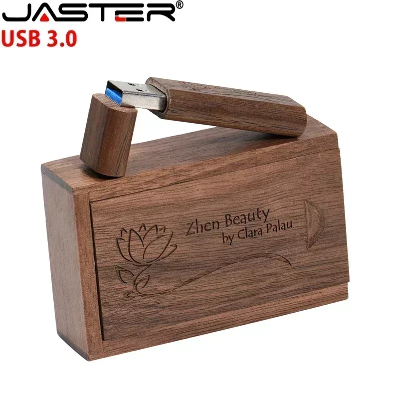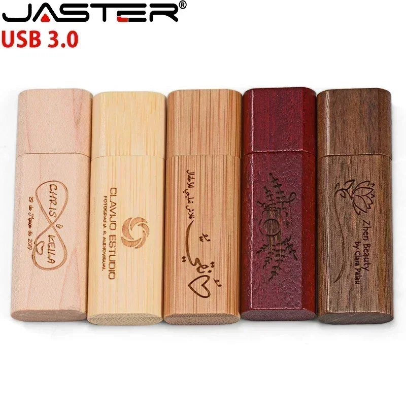 JASTER-Memoria USB 3,0 de madera con caja, 128GB, Memoria con logotipo gratuito, 64GB, Memoria ovalada, 32GB, Memoria USB de alta velocidad, 16GB, 8GB, 4GB