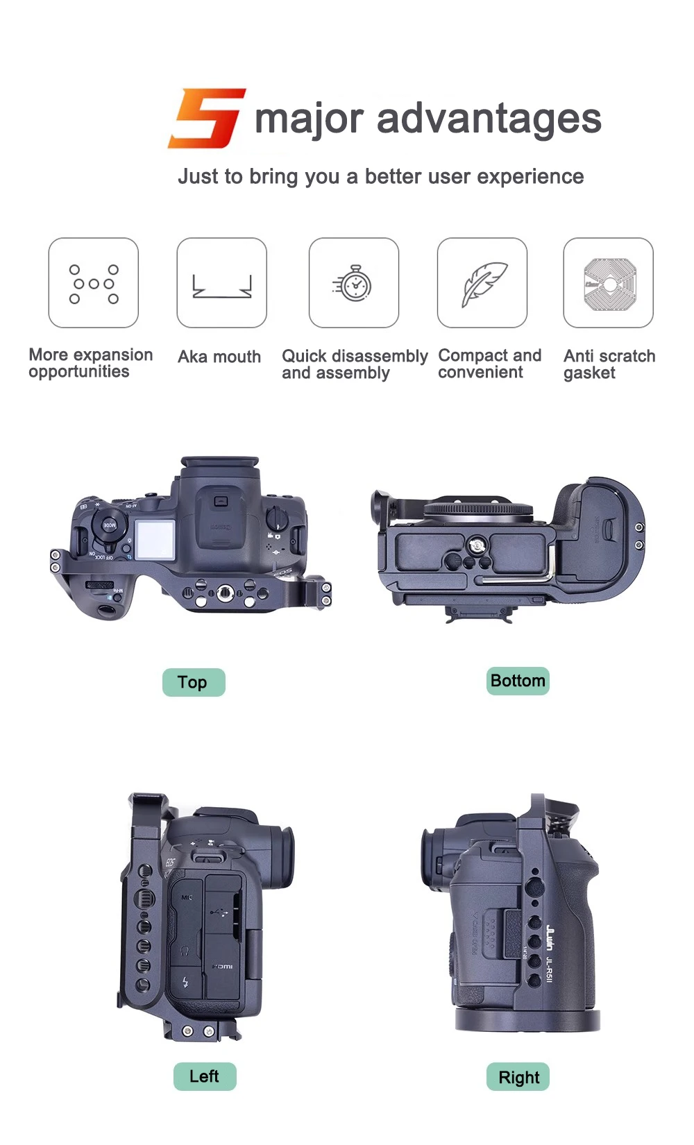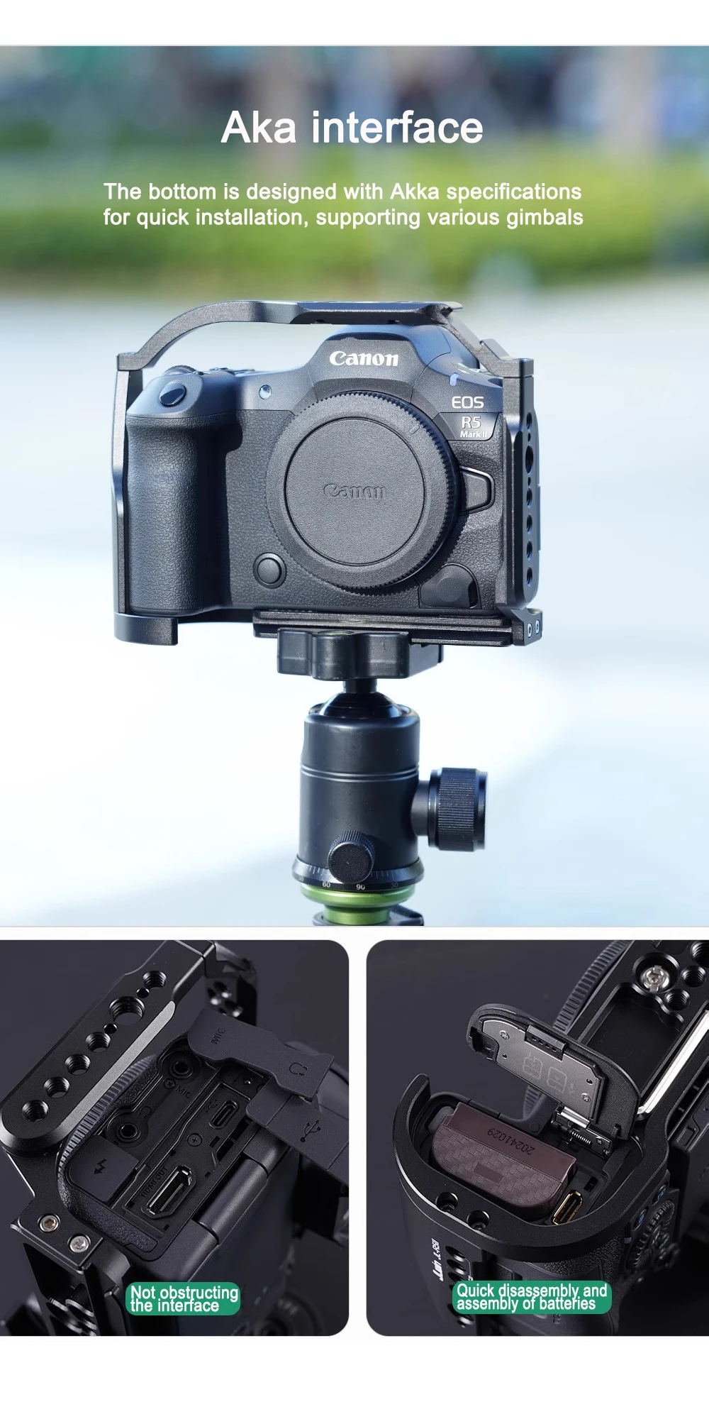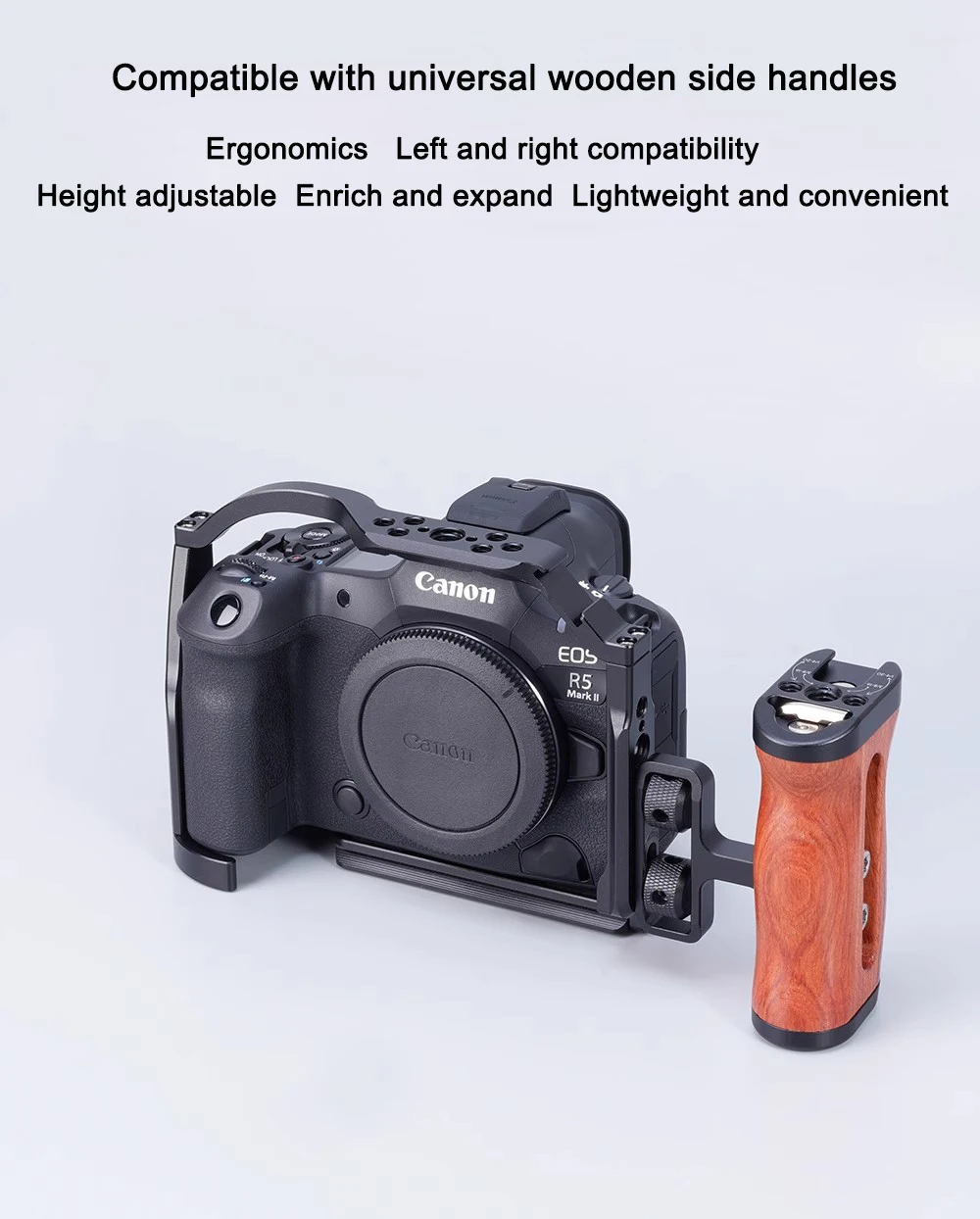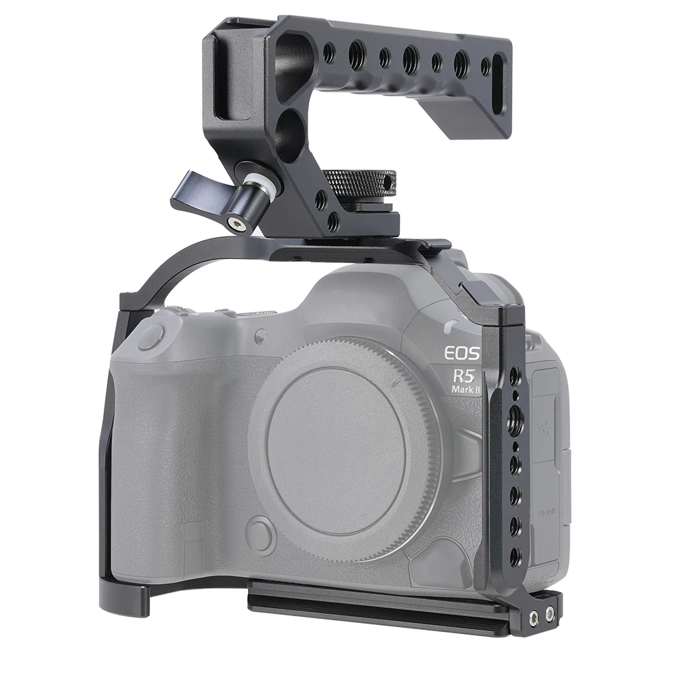 Descripción:La jaula de aluminio para cámara está diseñada específicamente para Canon EOS R5 Mark II Cámara.Es una jaula completa que es liviana y se adapta perfectamente a la cámara.Está equipado con múltiples orificios roscados de 1/4" -20 y 3/8" -16, orificio de ubicación ARRl y zapata fría para montaje de accesorios.