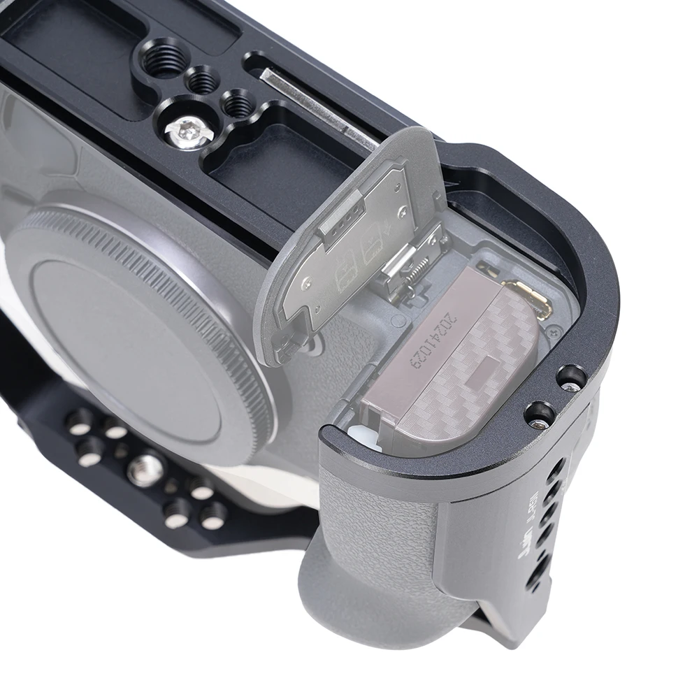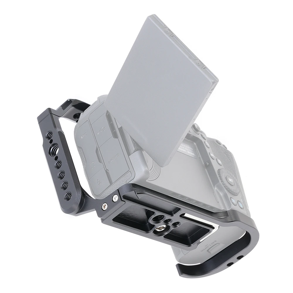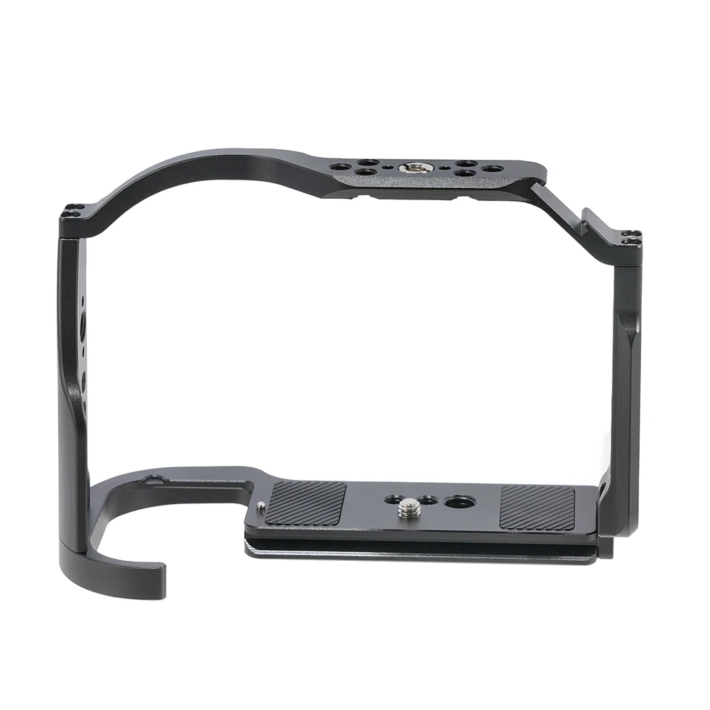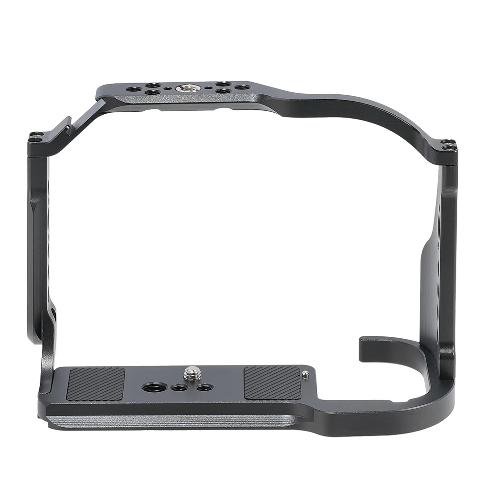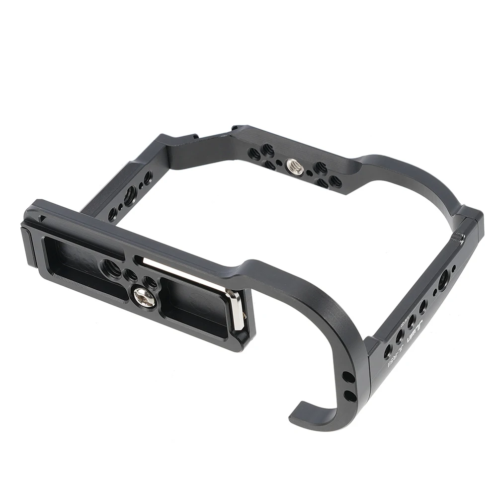 Características:Kit de jaula para Canon EOS R5 Mark II1.Jaula completa que protege para Canon EOS R5 Mark II2.El brazo de bisagra en la puerta de la batería se adapta a la curva de la cámara para una mejor experiencia de agarre.3.Orificios roscados de 1/4"-20, orificios de localización ARRI 3/8"-16, soportes para zapata fría, rieles NATO, puerto QD para manija, micrófono, luz LED, monitor, correa de mano, etc.4.La placa de liberación rápida Arca-Swiss en la parte inferior fija rápidamente el cardán y el trípode Arca-SwissEspecificación:Material: aleación de aluminioTecnología de procesamiento: mecanizado CNCTratamiento superficial: AnodizadoTamaño: 150*120*70mm (largo x alto x ancho)Peso neto: 170gEl paquete incluye:Diferentes paquetes tienen diferentes listas de productos.