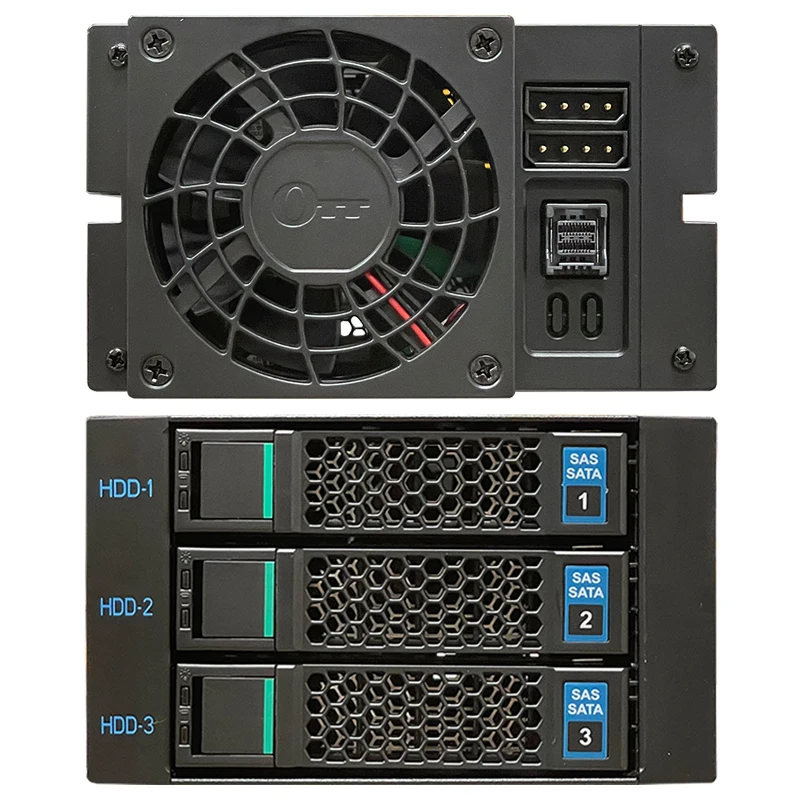 Las ranuras están diseñadas en el lado de la jaula de disco duro de 3 bahías. Ignorando el espacio en blanco convexo en la unidad óptica del chasis, se puede instalar directamente.