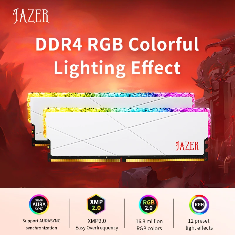 • Rendimiento de Overclocking:El JAZER RGB RAM DDR4 8GB 16GB de memoria puede ser overclocked para un mejor rendimiento, por lo que es una excelente opción para aquellos que quieren lo mejor de su escritorio.