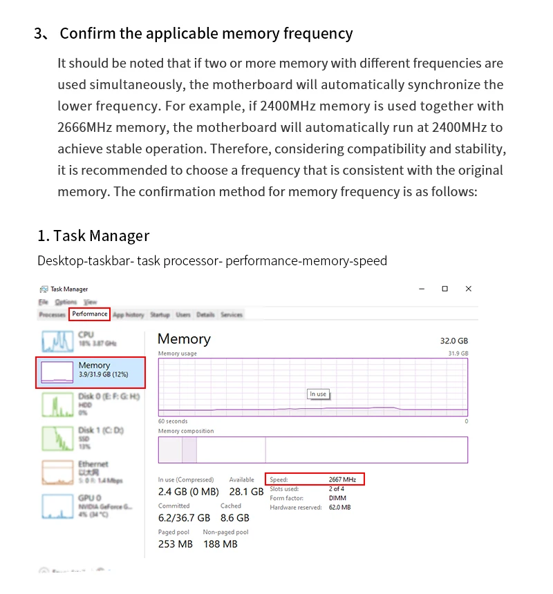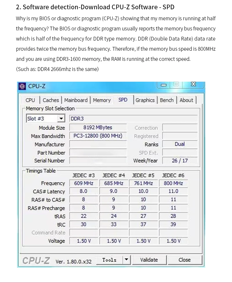 Una vez instalado el módulo de memoria, puede utilizar el software de CPU-Z para ver la frecuencia de funcionamiento real. Cuando el ordenador no pueda funcionar a la frecuencia nominal, compruebe y confirme: si otro hardware admite la frecuencia comprada/si se utilizan juntas más de dos memorias de diferentes frecuencias (la baja frecuencia sincronizará automáticamente la alta frecuencia)/Si la memoria XMP es compatible y está habilitada, etc., si tienes alguna pregunta, Por favor, consulte con el Servicio de Atención al Cliente de la tienda.