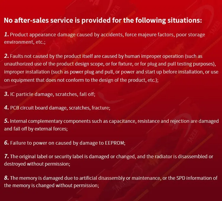 Debido a los diferentes lotes de fábrica, puede usar diferentes partículas (Samsung/Micron/Hynix/Nanya Easen/Elpida, etc.), diferente número de partículas (4P/8P/16P), diferente distribución de partículas (lado único/doble lado), cada partícula ha sufrido un estricto proceso de prueba, la compatibilidad y la estabilidad están garantizadas, por favor, tenga la seguridad de comprar.