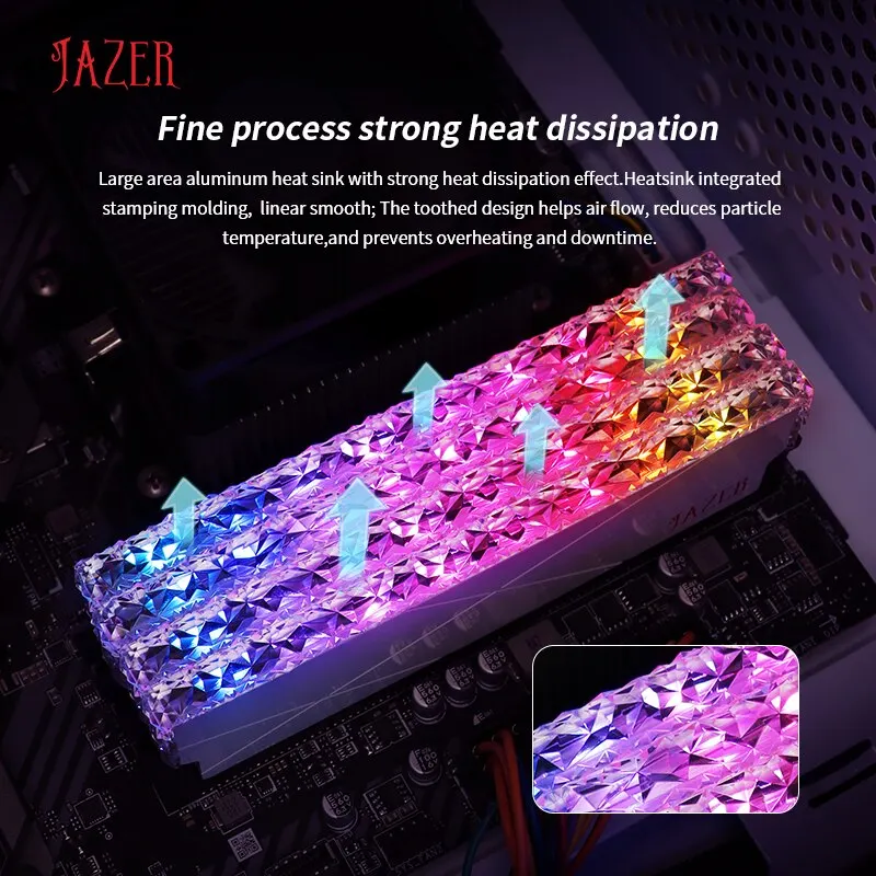 • Alta Frecuencia de memoria:Con una frecuencia de memoria de 3600MHz, El JAZER RGB RAM DDR4 8GB 16GB de memoria garantiza un rendimiento suave y tiempos de respuesta rápidos.