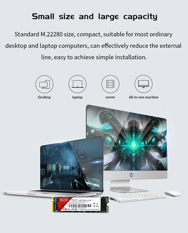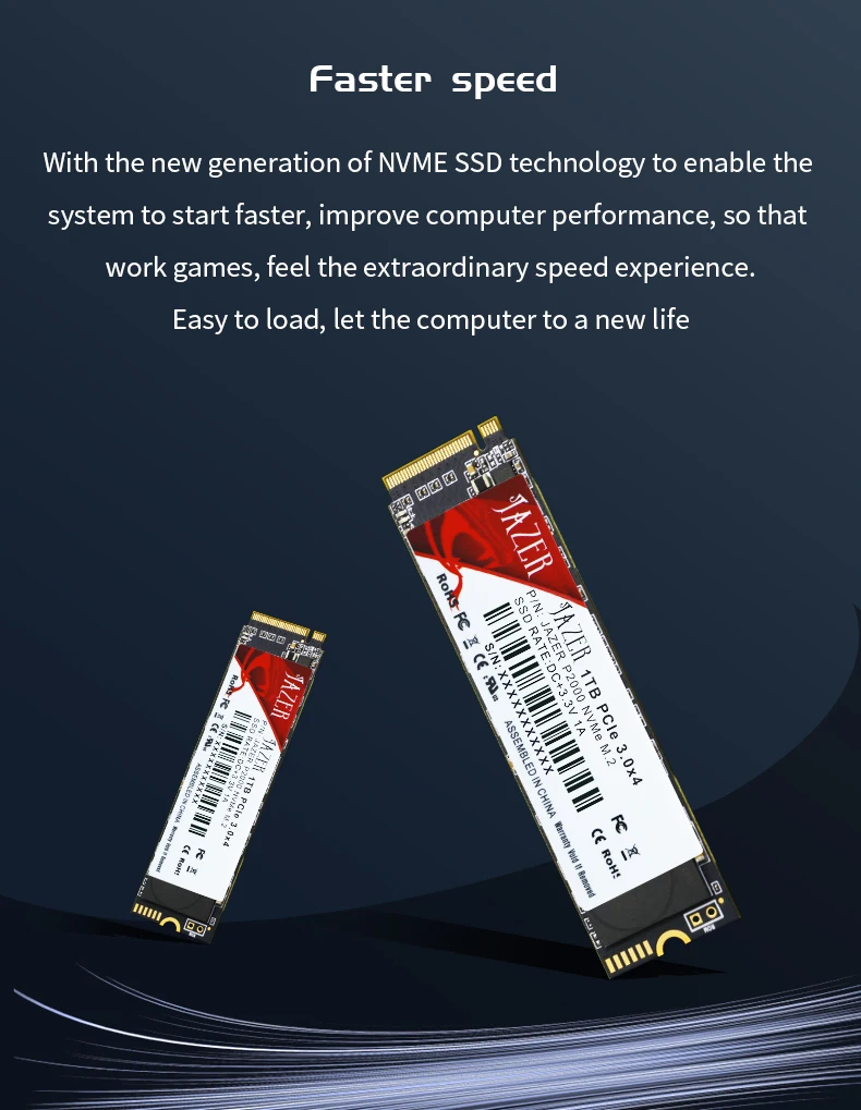 Comprar JAZER-unidad interna de estado sólido para ordenador portátil y de escritorio, SSD M2 NVMe de 256GB, 512GB, 1T, 2T, M.2, 2280, PCIe, 3,0