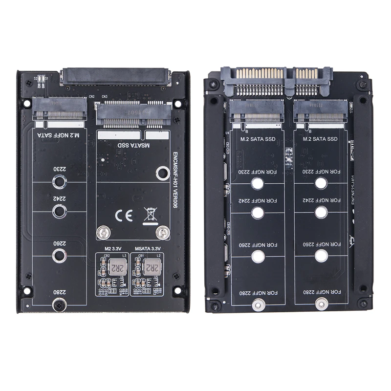 Aumenta enormemente el rendimiento del sistema agregando la velocidad de un SSD M.2 en cualquier aplicación SATA de 2,5 ", con el adaptador mSATA SSD + M.2 SATA SSD a SATA.