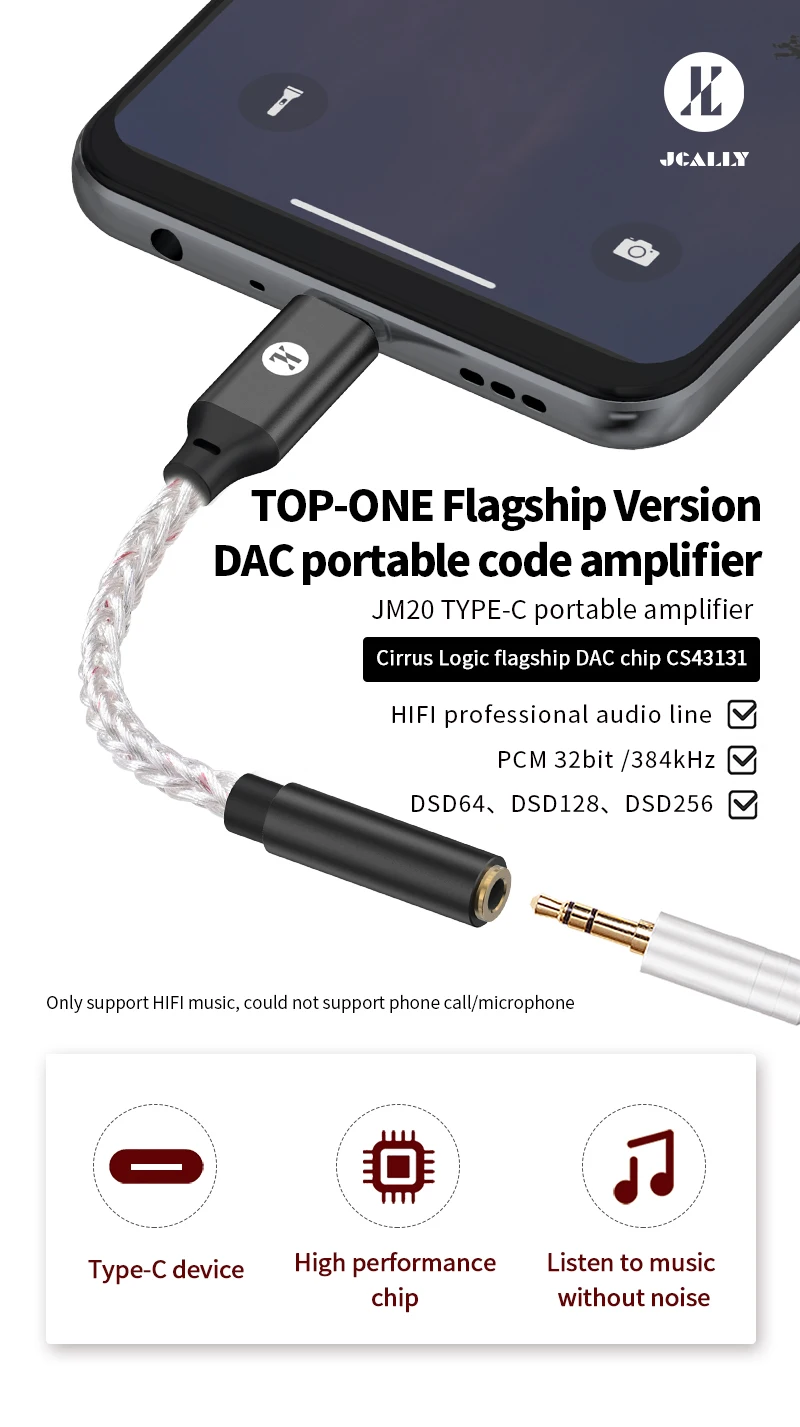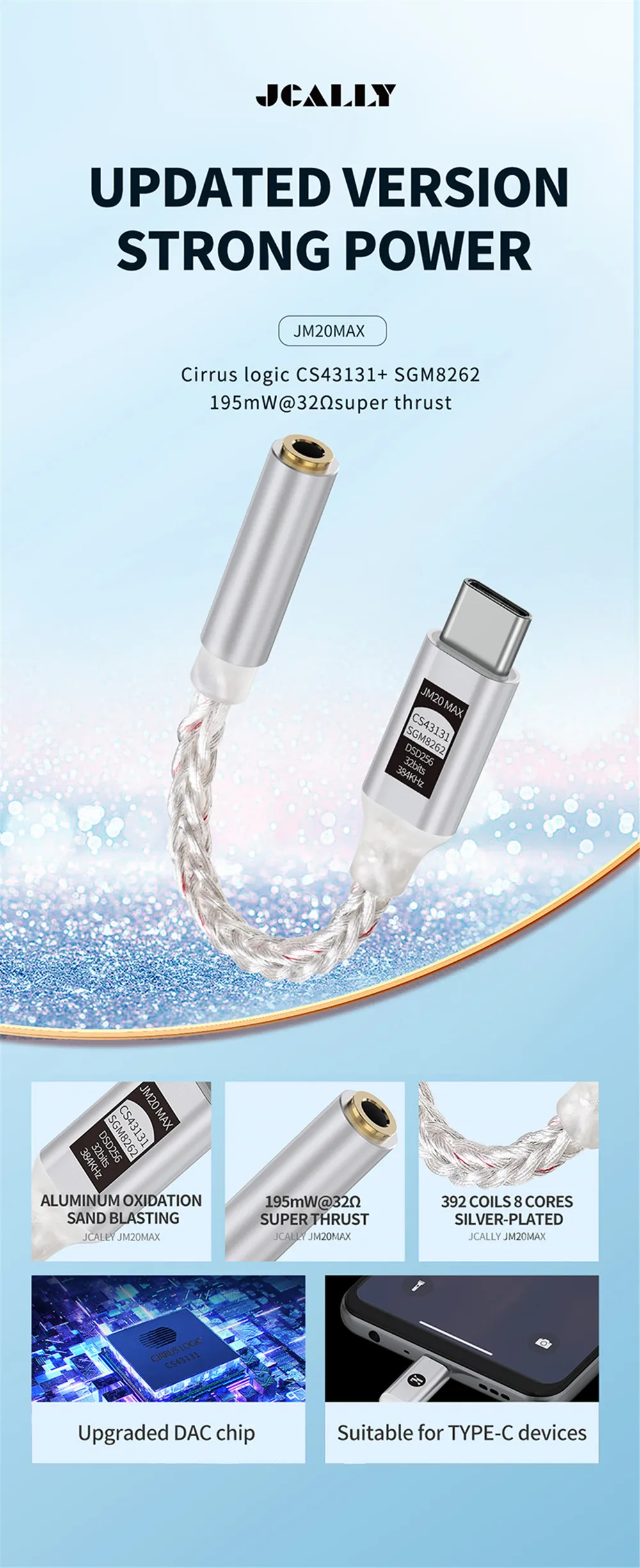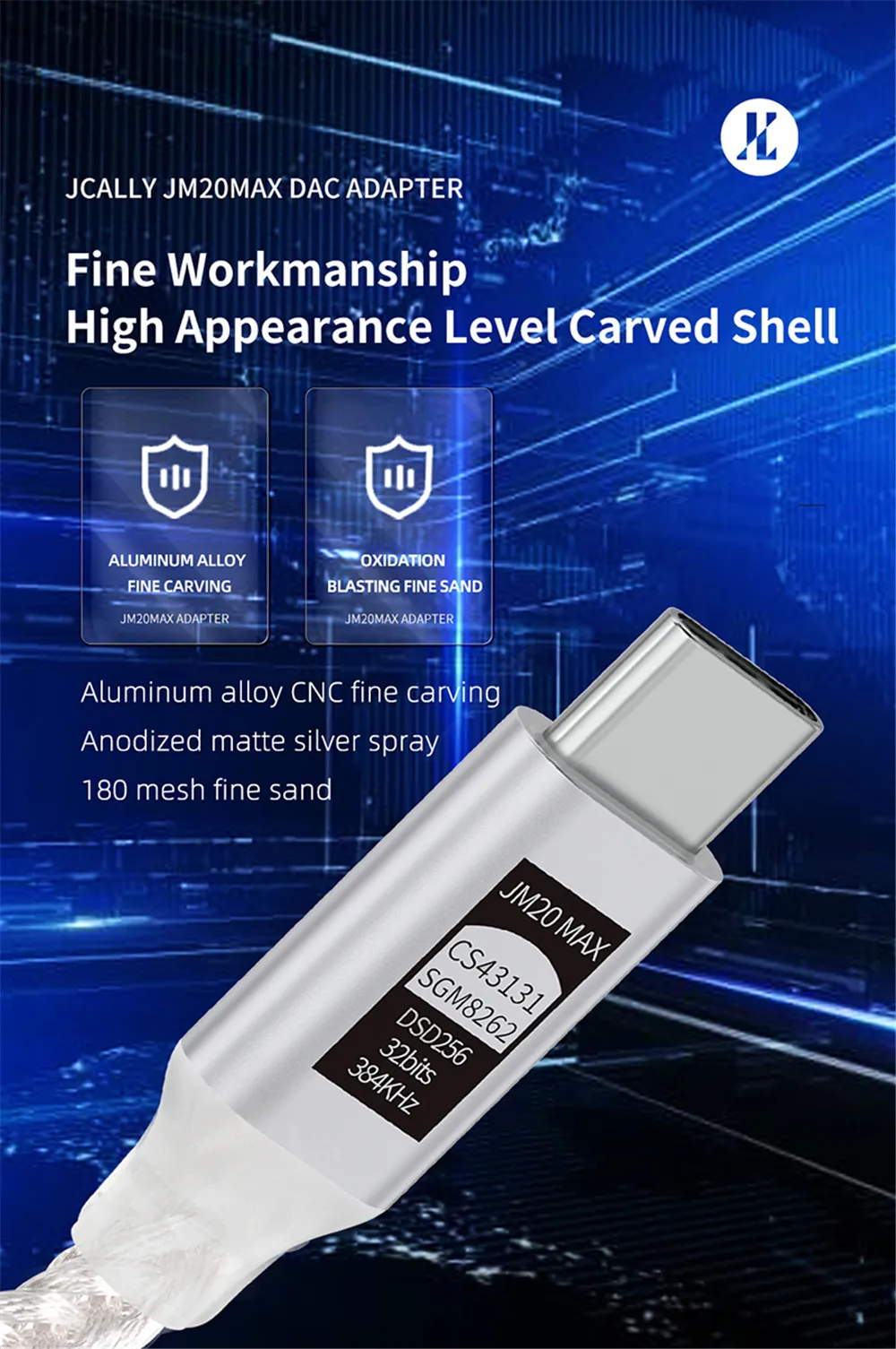 Comprar JCALLY JM20 Max CS43131 tipo C a 3,5mm HiFi DAC JM20 decodificación de Audio Digital USB C adaptador de amplificador de auriculares para Android iPhone 15 16