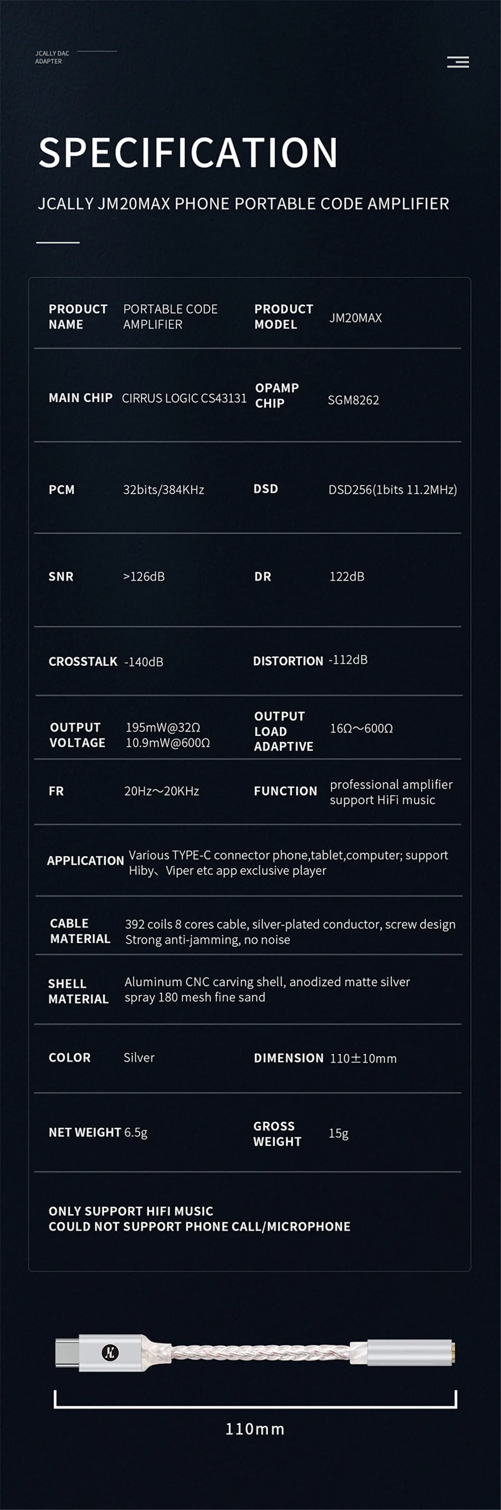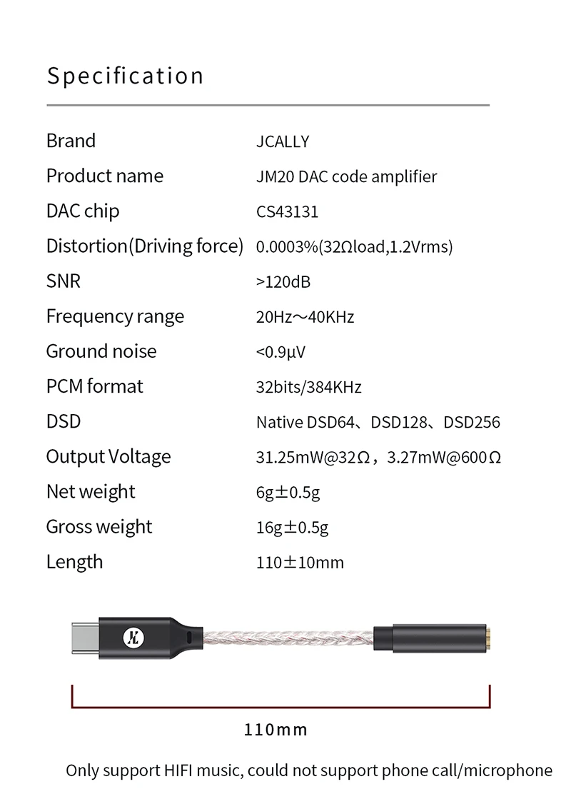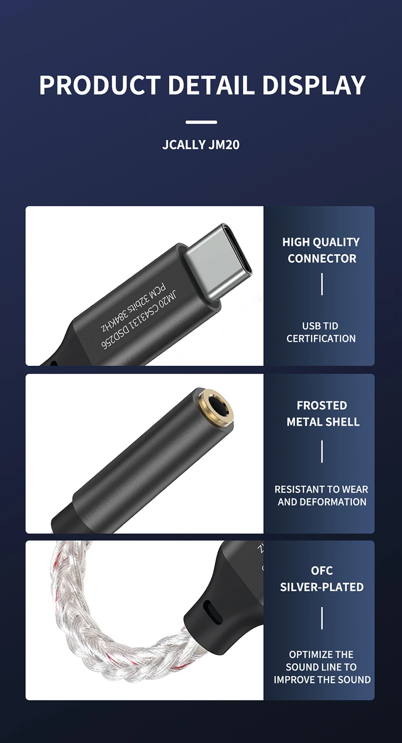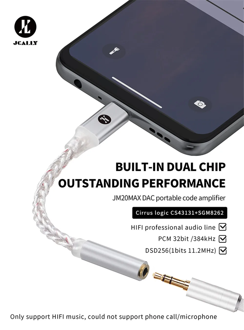 Comprar JCALLY JM20 Max CS43131 tipo C a 3,5mm HiFi DAC JM20 decodificación de Audio Digital USB C adaptador de amplificador de auriculares para Android iPhone 15 16