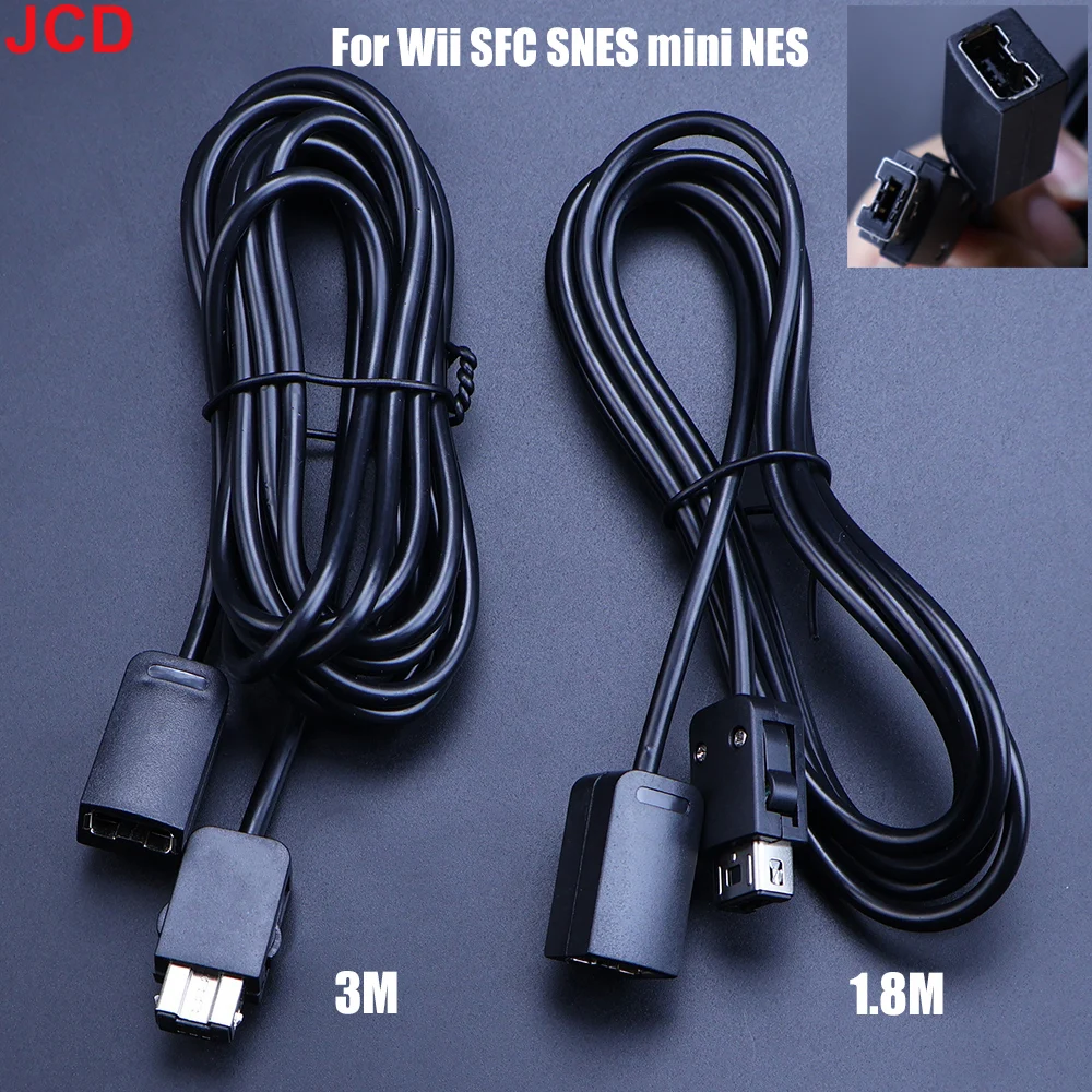 JCD 1 Uds 1,8 M 3M Cable de extensión Cable extensor de juego para controlador SNES clásico Mini/SFC para controlador NES Wii negro