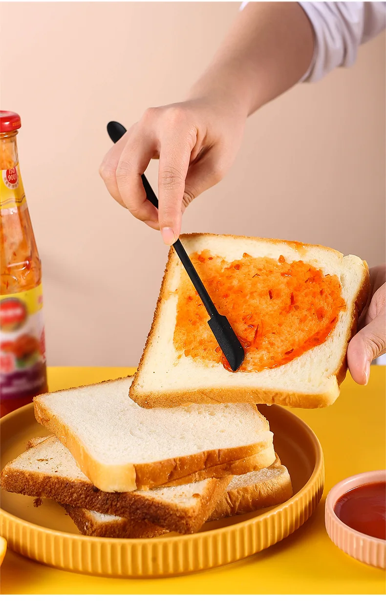 4.Al usar las pequeñas espátulas, es conveniente para untar mermeladas, mantequilla de maní, ketchup, miel, salsa para ensalada, etc. de manera uniforme.Además, también es ideal para raspar productos, como brillo de labios, esmalte de uñas, base líquida, mascarilla, etc.