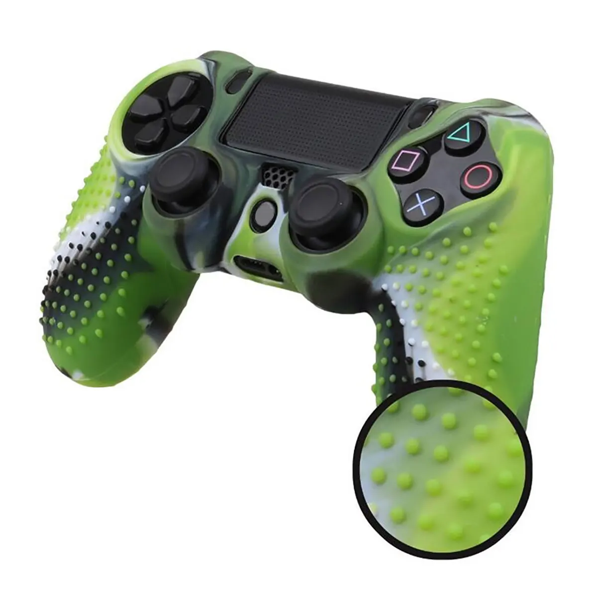 Compatible con:Para mando de PS4 PlayStation 4Para mando PlayStation 4 PS4 ProPara PlayStation 4 PS4 Slim ControllerEl paquete incluye1 * funda de silicona2 * Tapas de agarre para pulgar