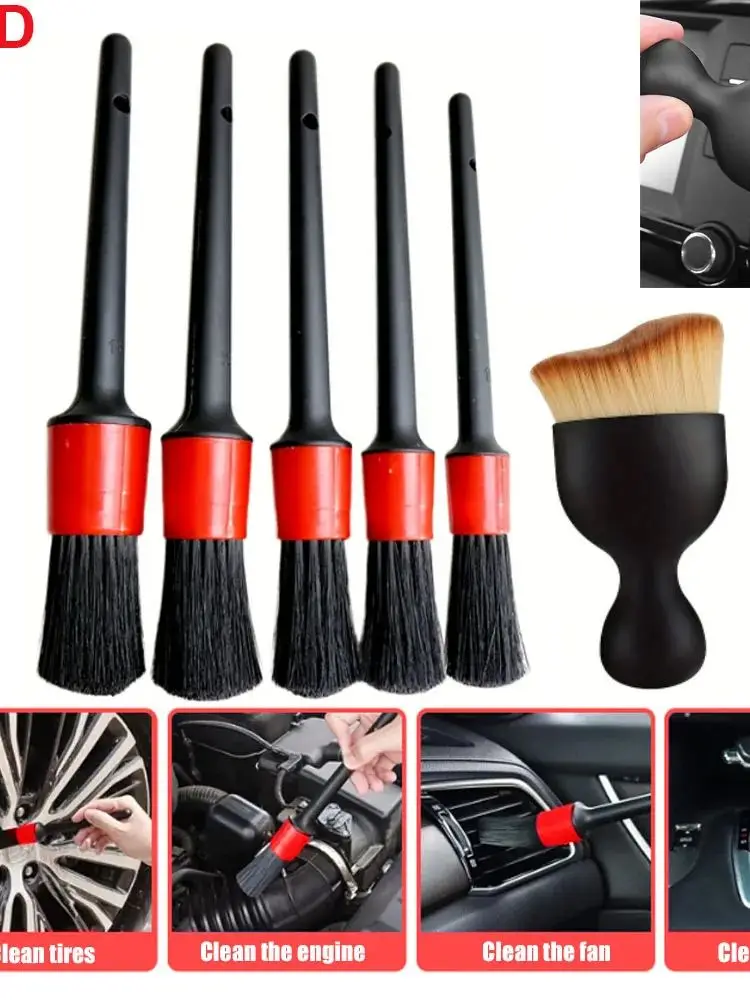 JCD Juego de 6 cepillos para detalles de cuidado de lavado de coches, para limpiar ruedas, salpicaderos, rejillas de ventilación y más cepillos de limpieza de coches, accesorios para coche