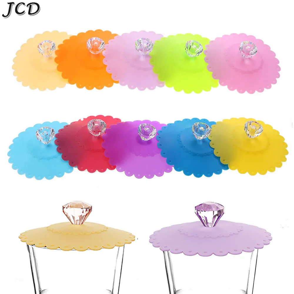 Comprar JCD-Tapa de silicona de grado alimenticio con diamantes, tapa de vidrio para bebidas, tapa antipolvo para tazas de café, sello para mantener el calor