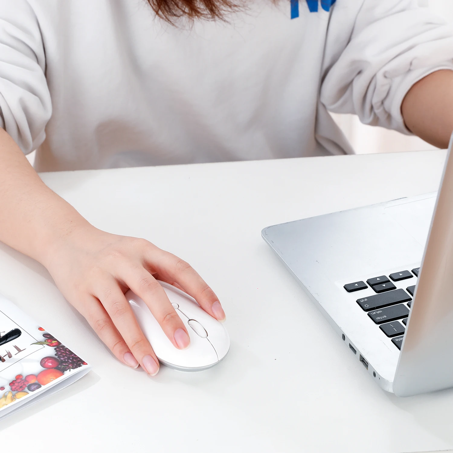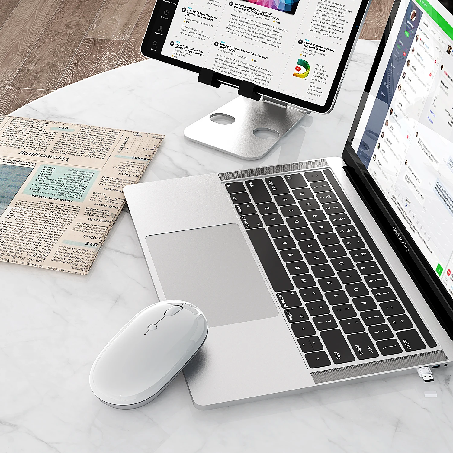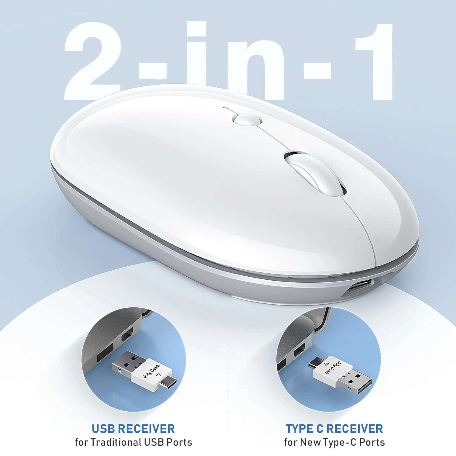 Comprar Jellycomb-ratón inalámbrico con USB y tipo c, Mouse blanco recargable con Bluetooth, 2,4G, para MacBook, iPad, portátil, PC