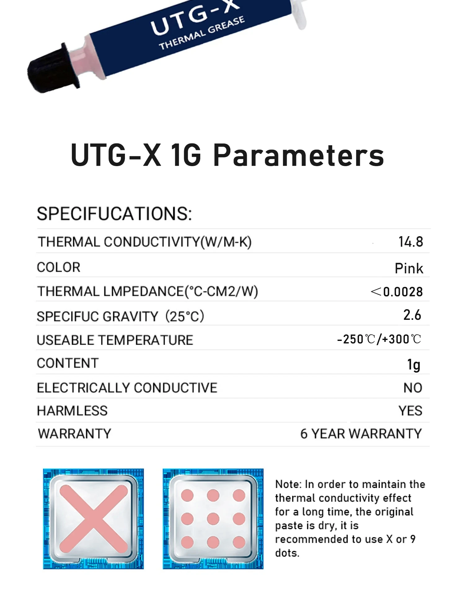 Comprar Jeringa UPSIREN UTG-X, 1g, disipación de calor, yeso térmico de silicona para procesador de CPU, vídeo, GPU, grasa de refrigeración, compuesto térmico