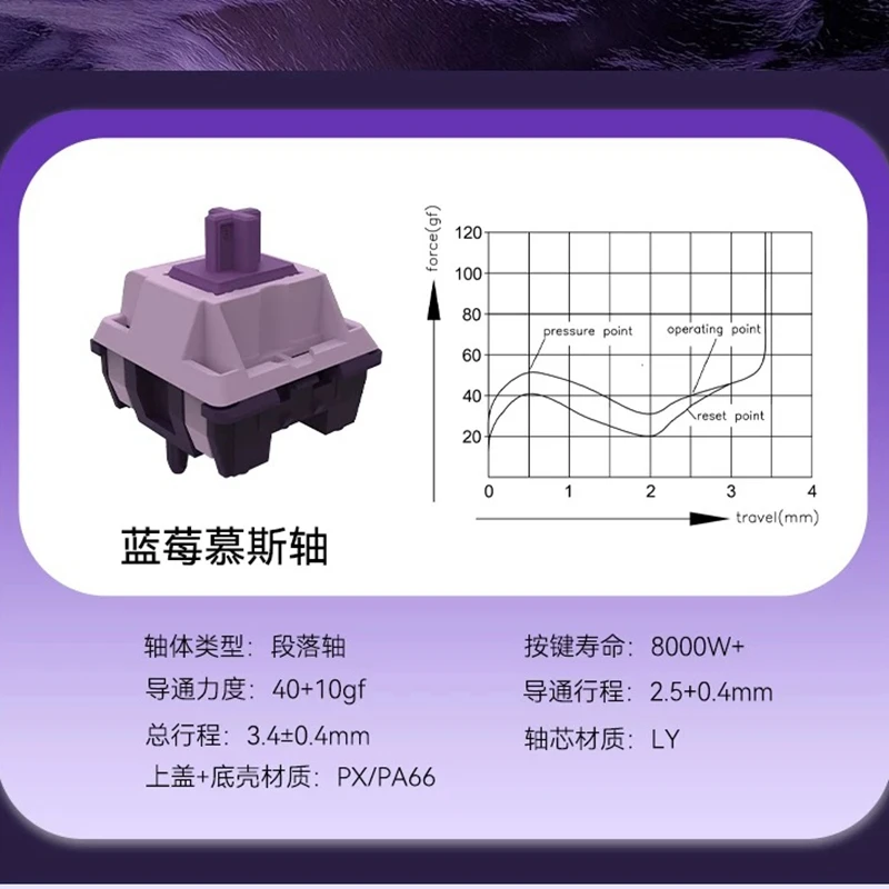 Jerrzi-interruptor de Mousse de arándanos, Teclado mecánico táctil de 5 pines, interruptores HIFI, lubricación exquisita para Kit de teclado para juegos