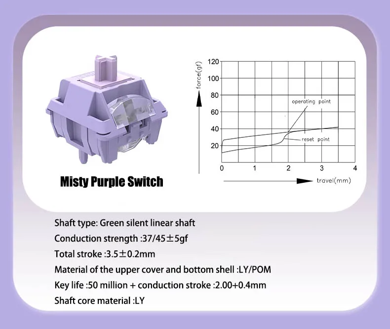 JERRZI interruptor púrpura nebuloso interruptores de teclado lineal silencioso 37g LY POM Gamer interruptor de teclado mecánico para Aula F75 AJAZZ AK820