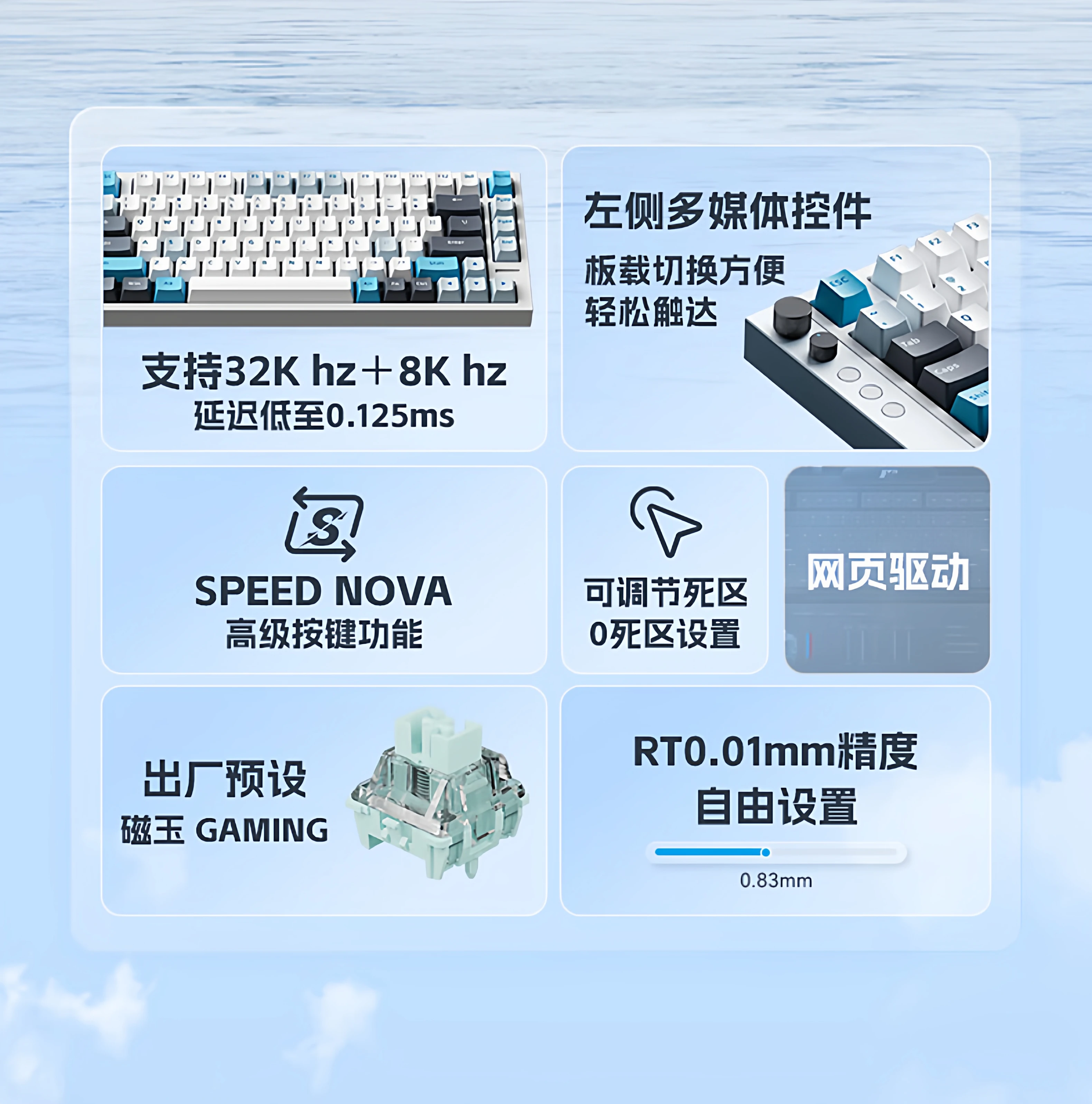 Teclado mecánico de eje magnético JET75, aleación de aluminio, RT0,01mm, 8kHZ, 0,0125ms, teclado para jugadores personalizado RGB de intercambio en caliente