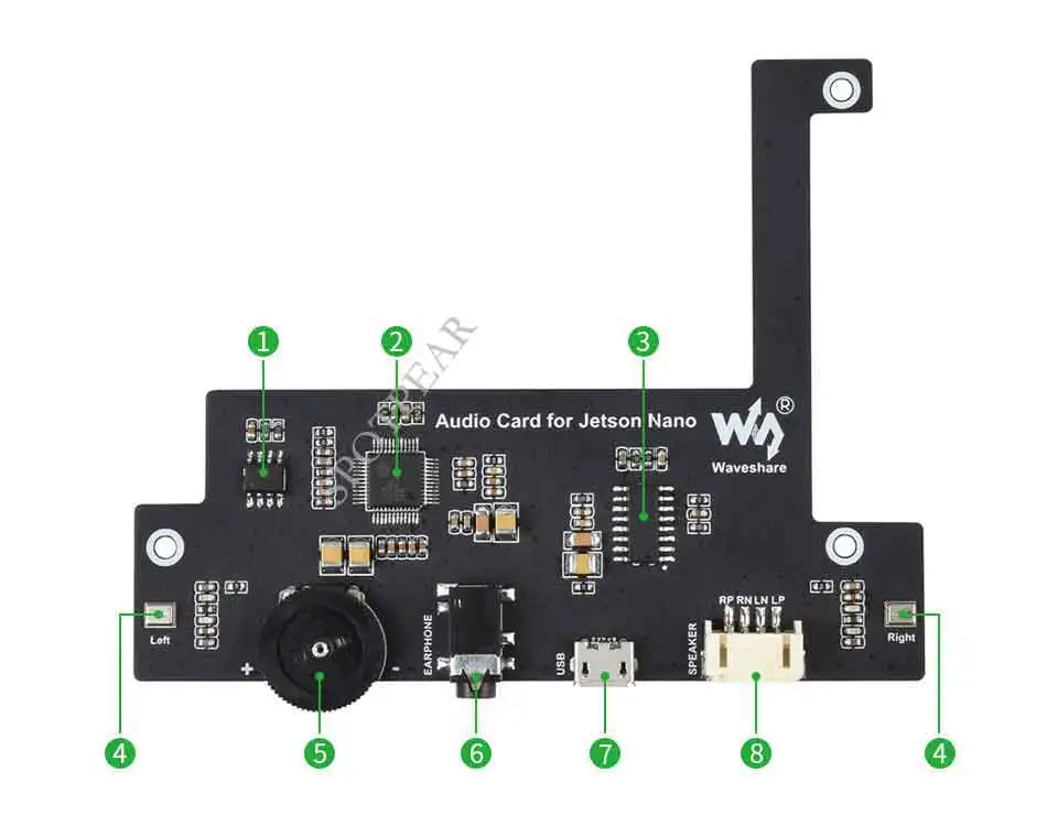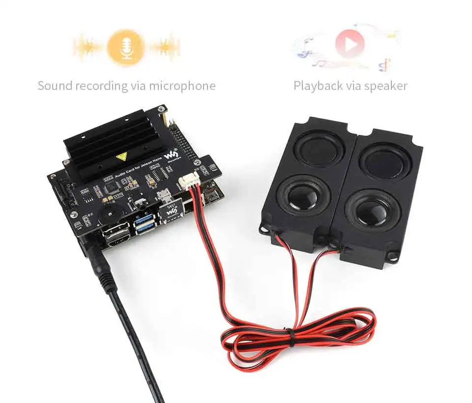 Como sabemos, no hay salida de audio del kit de desarrollo Jetson Nano, y este módulo está diseñado para adaptarse al rompecabezas con capacidades como colección de sonido, reproducción de música, reconocimiento de voz, diálogo de robot, Y así sucesivamente...