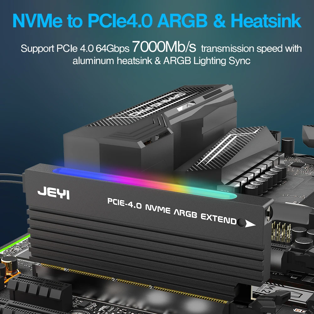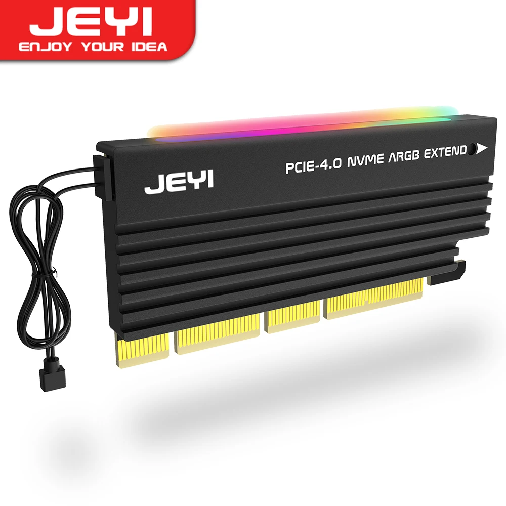 Comprar JEYI-adaptador ARGB PCIe 4,0 NVMe, tarjeta adaptadora PCIe a NVMe M.2 con disipador de calor, Compatible con PCIe 4,0/3,0/2,0/1,0, ARGB Sync