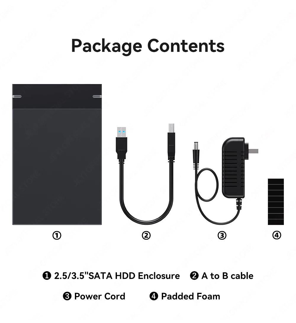 La carcasa JEYI 2.5/3,5" HDD/SSD ofrece un diseño sin herramientas para una fácil instalación.Simplemente inserte su unidad y conéctela; no se necesitan controladores.Compatible con Windows XP/7/8/10 y Mac OS, solo admite dispositivos SATA de 15 pines y ofrece hasta 20 TB de capacidad.