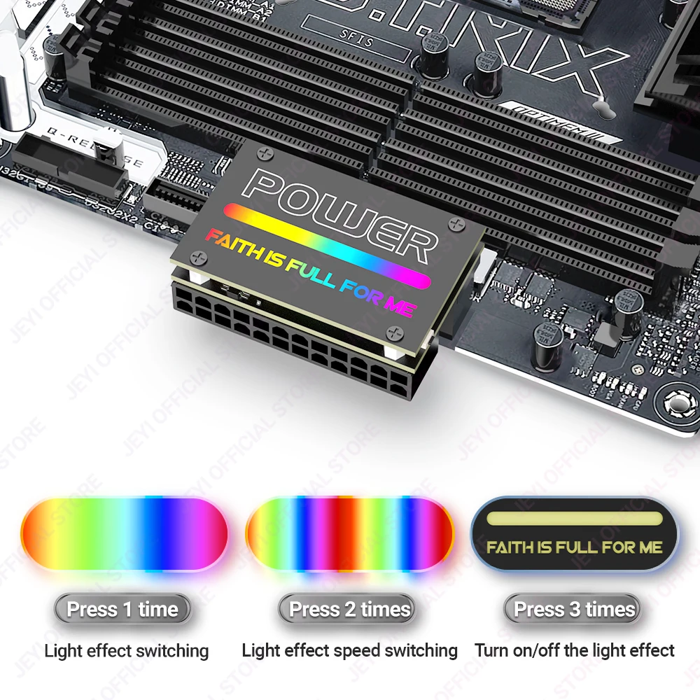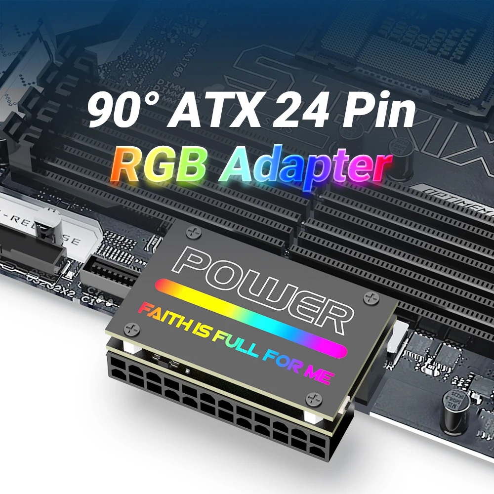 Comprar JEYI-adaptador de corriente para placa base, dispositivo ATX de 24 Pines, 90 °, RGB, 18 modos de luz, hembra a macho, 90 grados, suministro para PC de escritorio