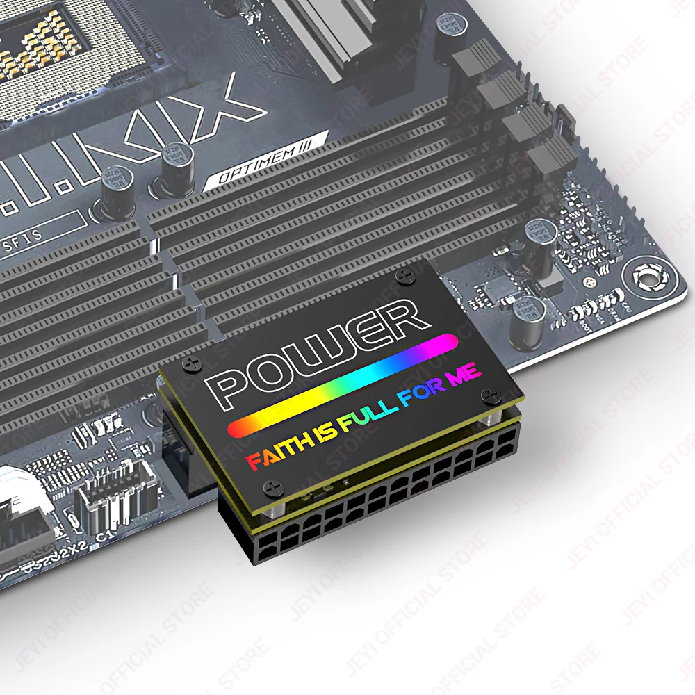 • Adaptador RGB de 90 grados :El adaptador JEYI ATX 24Pin ofrece un ángulo de 90 grados, permitiendo una conexión estable y segura entre el motherboard y la fuente de alimentación.