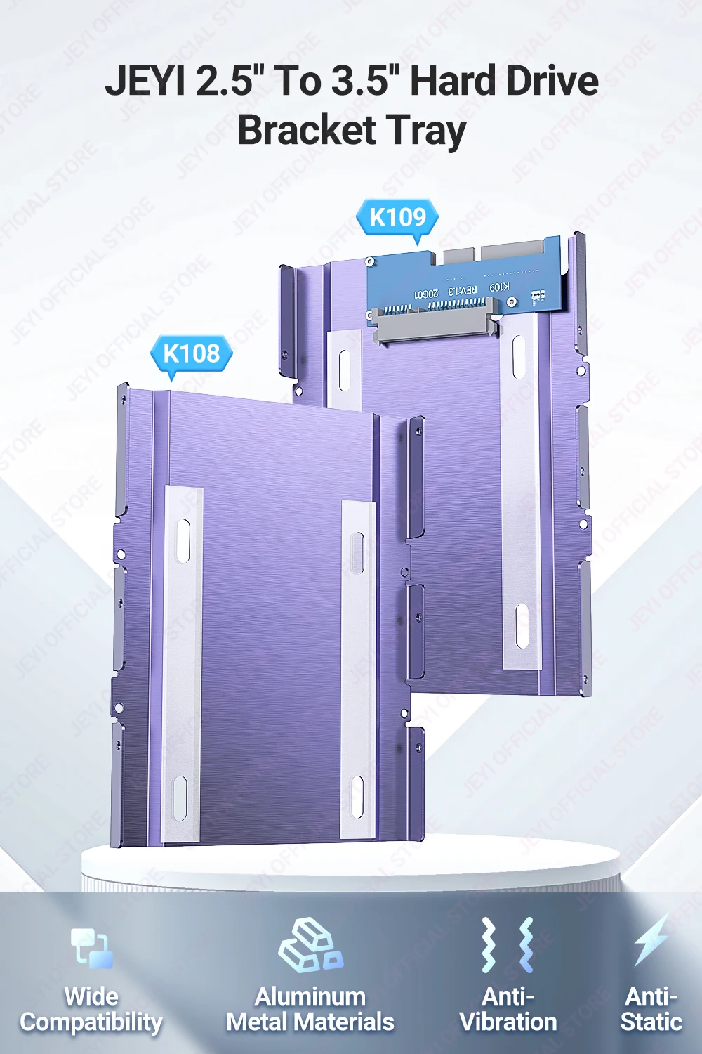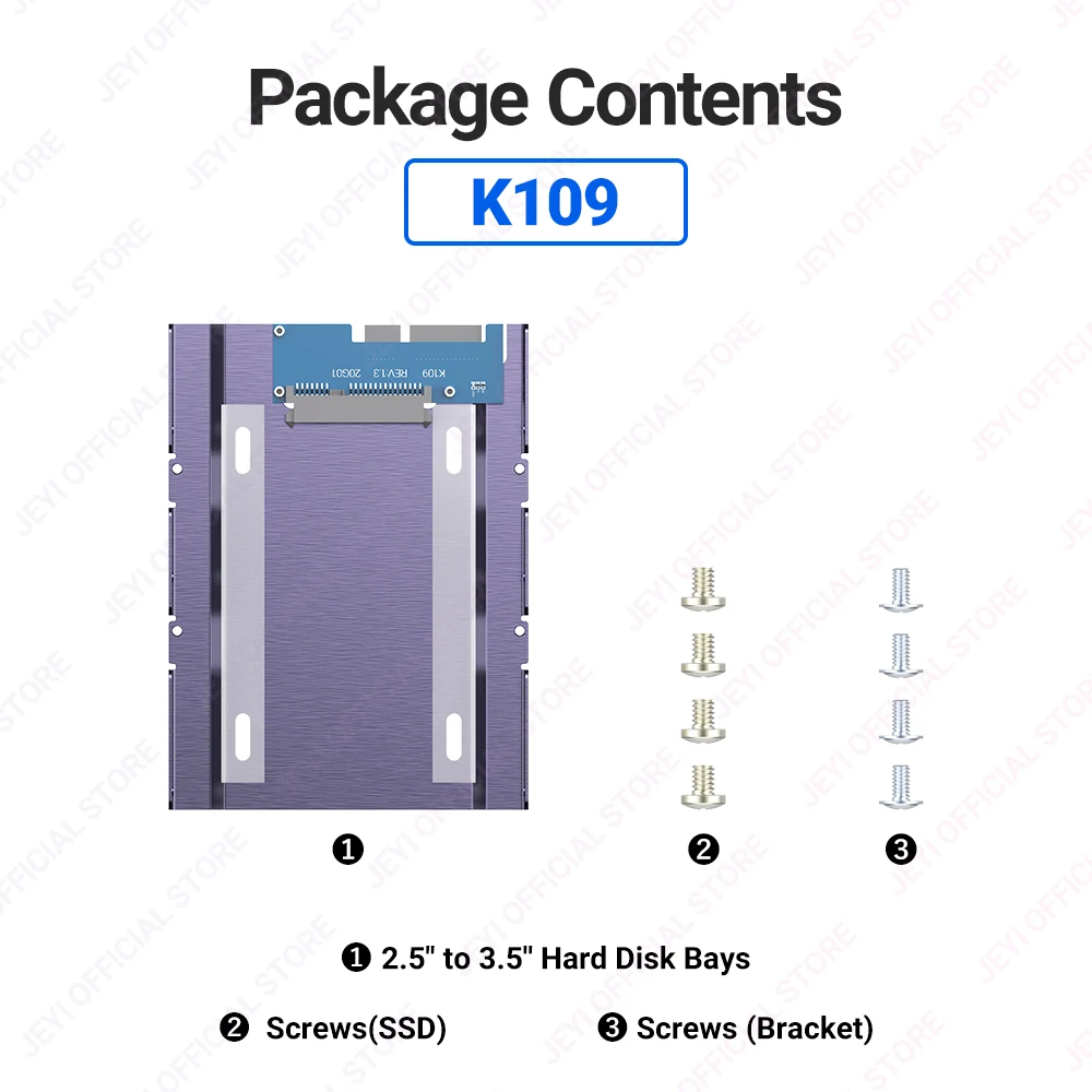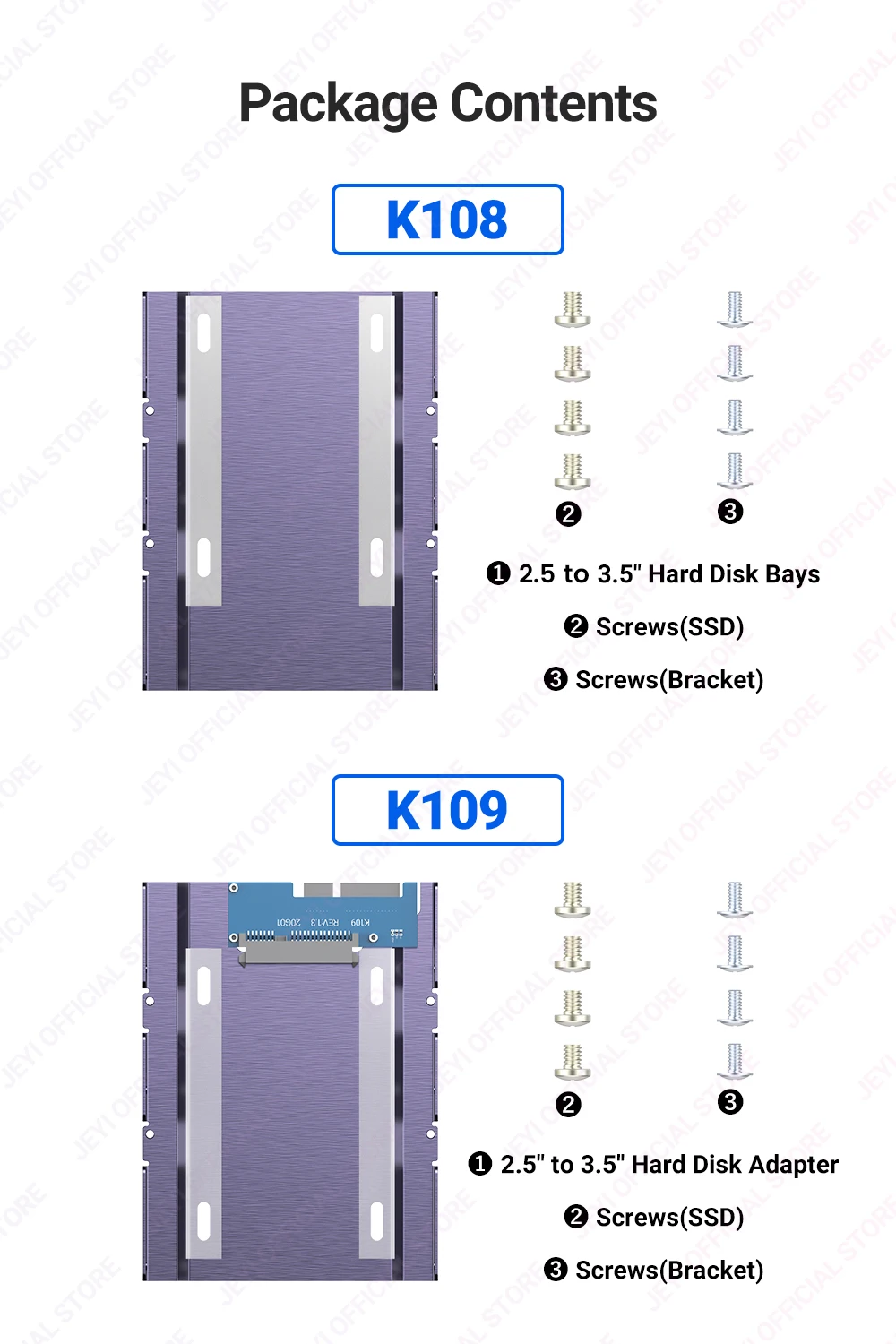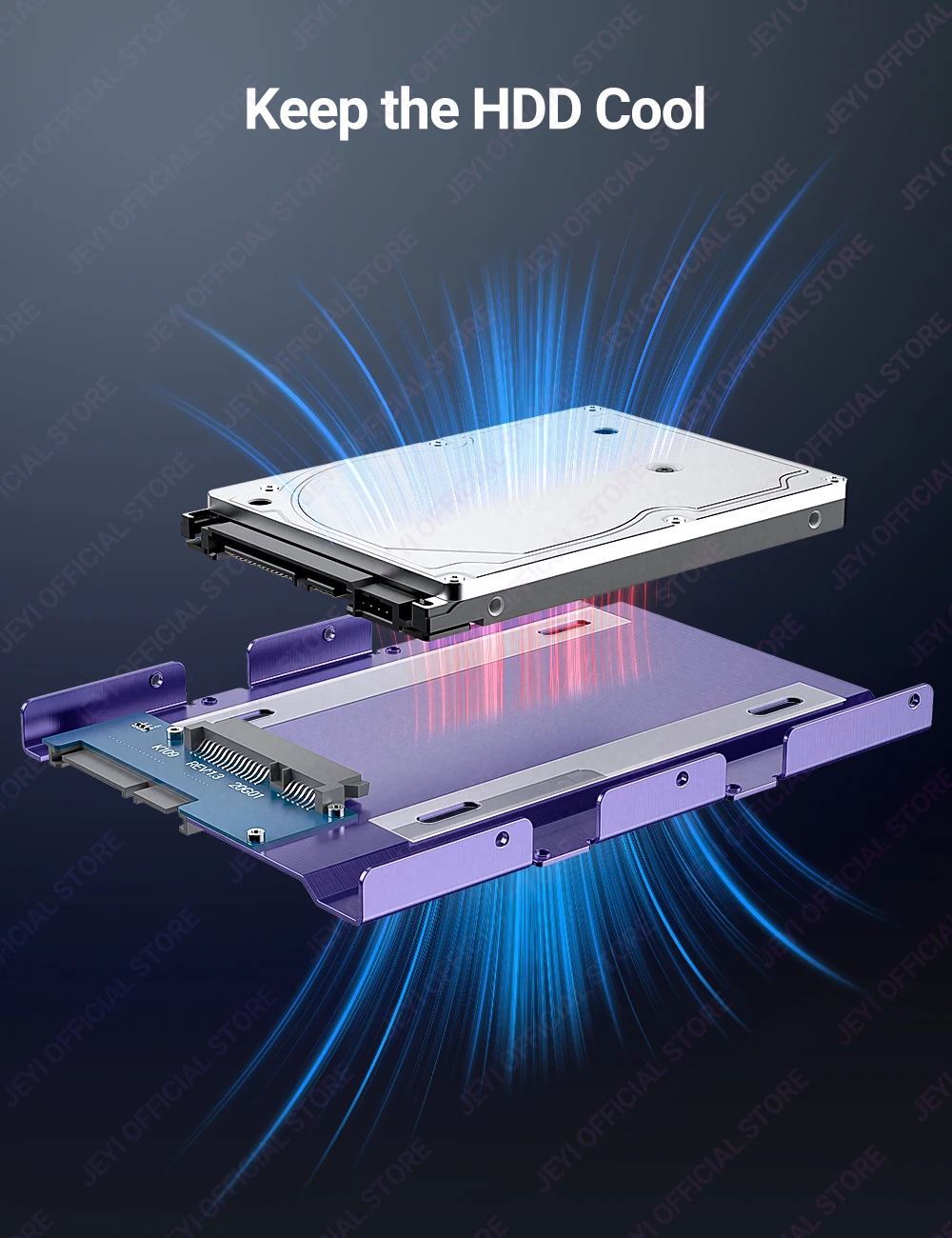 【Adaptador de unidad de 2,5 a 3,5】- El adaptador JEYI HDD puede convertir fácilmente unidades SATA de 2,5 pulgadas a un tamaño de 3,5 pulgadas.Compatible con cualquier disco duro de 7/9,5/12,5 mm y 2,5 pulgadas.