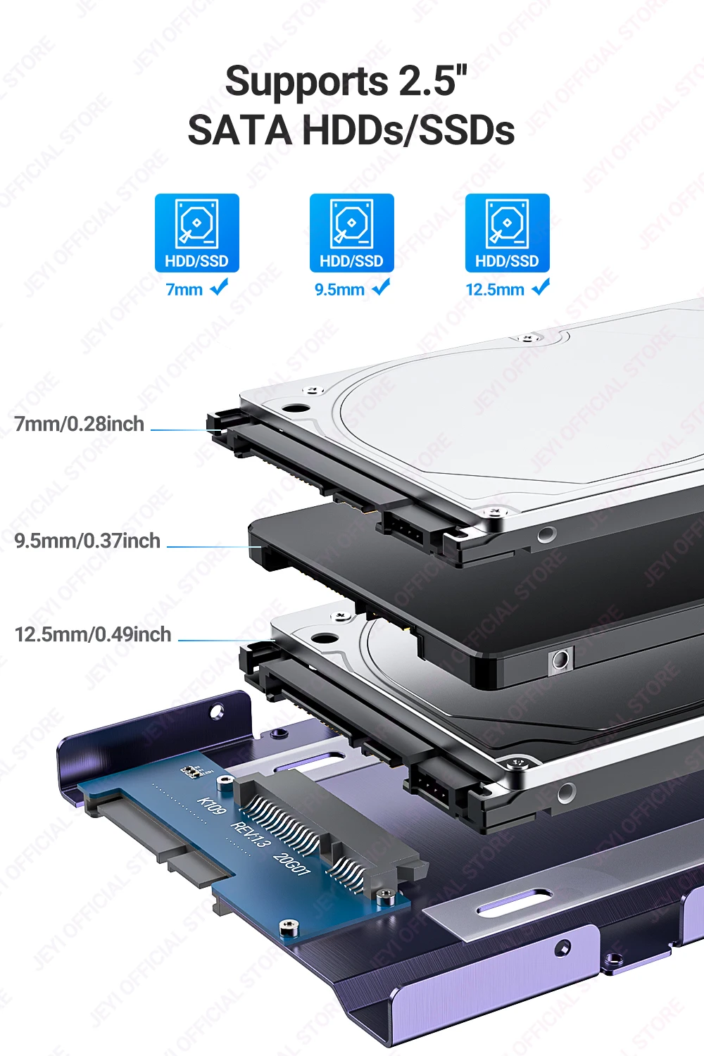 Compatible con todos los SSD/HDD SATA de 2,5", 7 mm/9 mm/12,5 mm