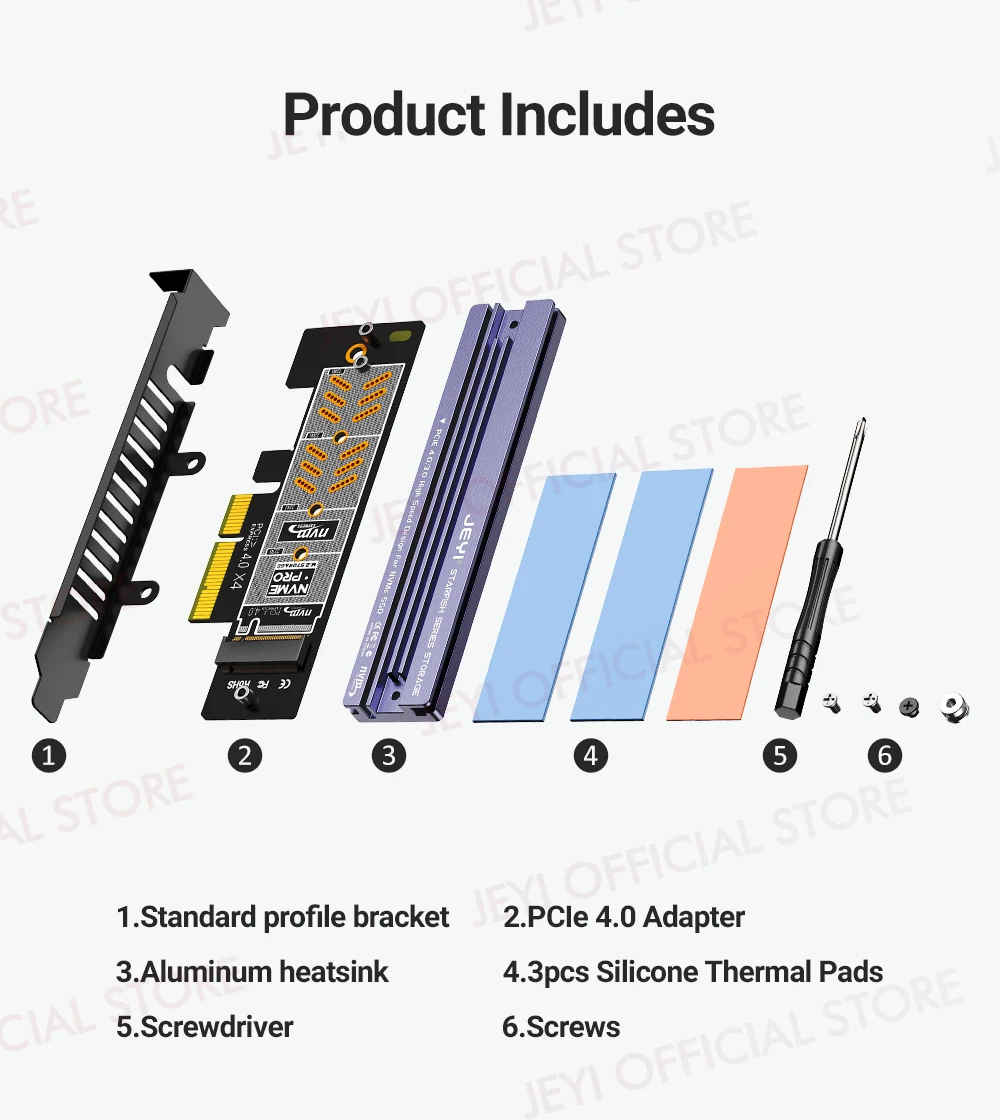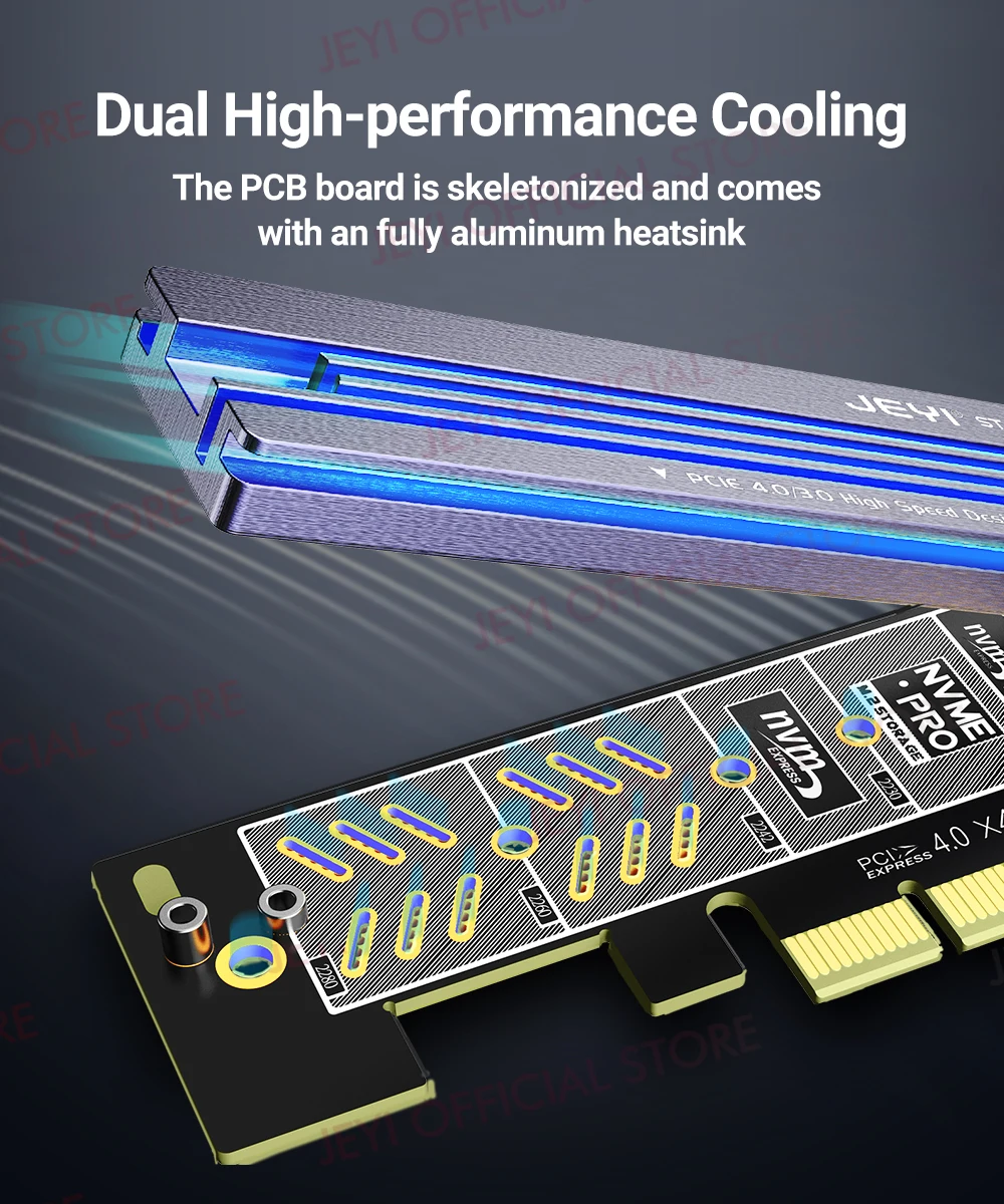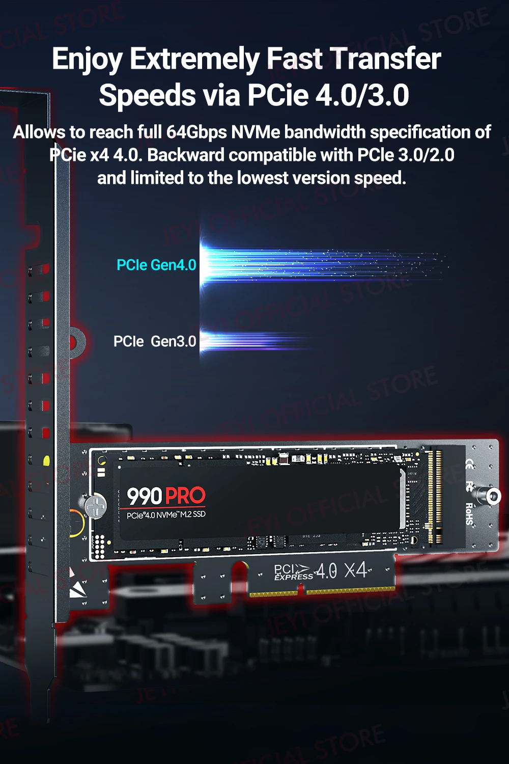 Comprar JEYI-adaptador M.2 NVME a PCIe 4,0 3,0, disipador de calor SSD de aluminio, NVMe 64Gbps Gen4 PCIE x1 X4 X8 X16, tarjeta de expansión para escritorio