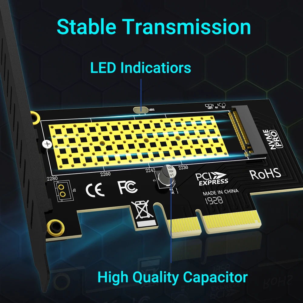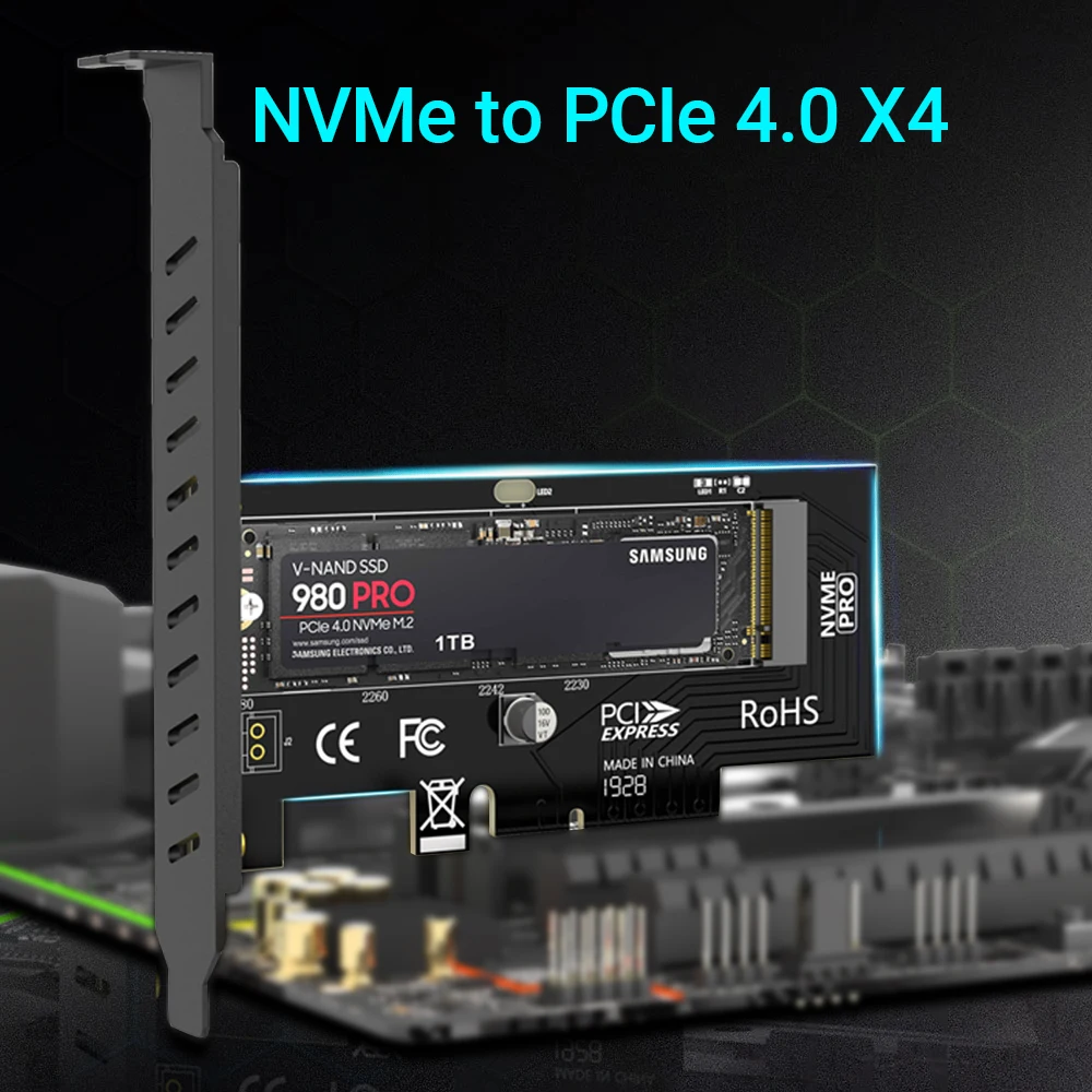 Comprar JEYI-adaptador M.2 NVME a PCIe 4,0 3,0 SSD, tarjeta de expansión PCIe 4,0 X4 X8 X16 de 64Gbps para PC de escritorio, PCI-E GEN4 GEN3 de velocidad completa