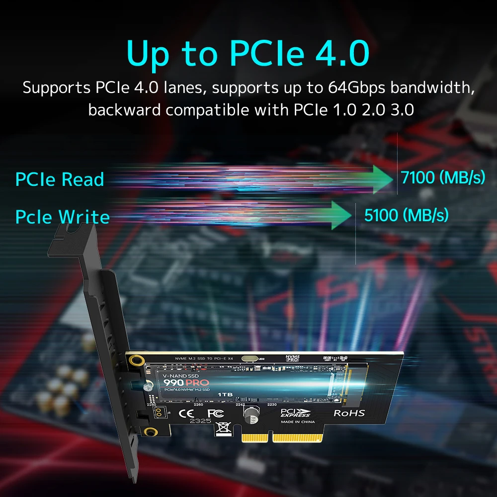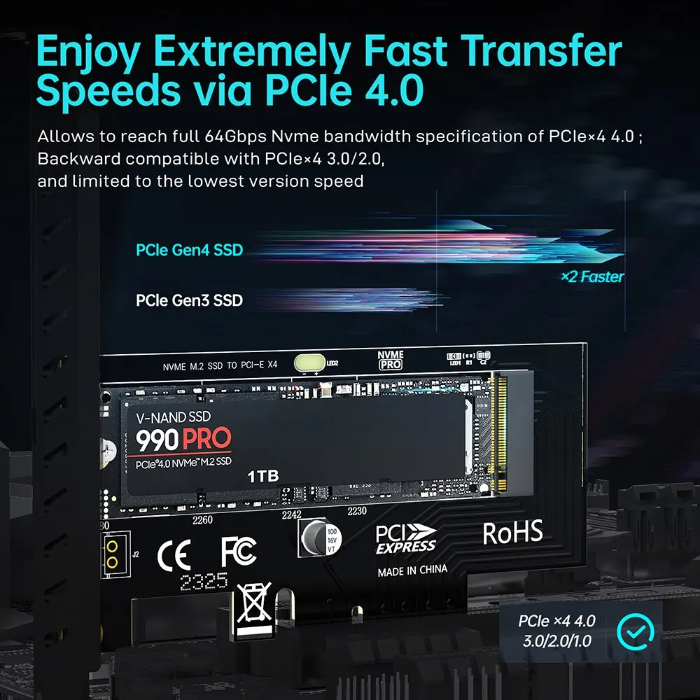 • Transferencia de datos de alta velocidad :Con 64Gbps PCIe 4.0 X4 X8 X16 tarjeta de expansión, este adaptador garantiza una transferencia de datos rápida y eficiente.