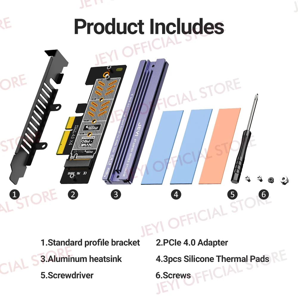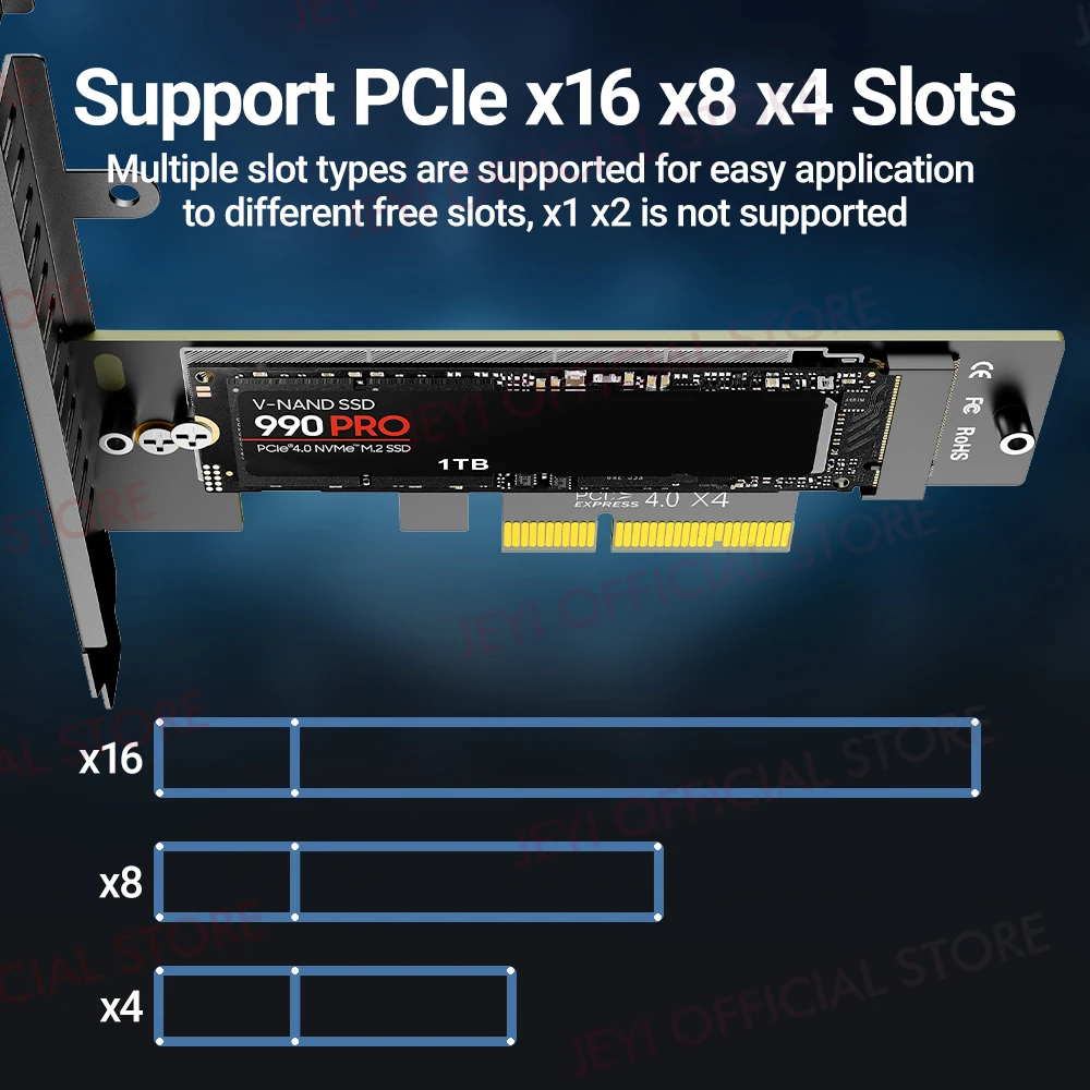 Comprar JEYI-adaptador M.2 NVME a PCIe 4,0 3,0, disipador de calor SSD de aluminio, NVMe 64Gbps Gen4 PCIE x1 X4 X8 X16, tarjeta de expansión para escritorio