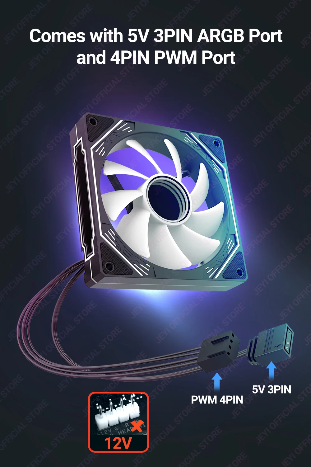 Comprar JEYI ARGB ventilador 120mm ventiladores de refrigeración de PC ventilador de computadora disipador de calor ultra silencioso con 4PIN PWM, 5V 3PIN ARGB direccionable puerto SYNC/RC