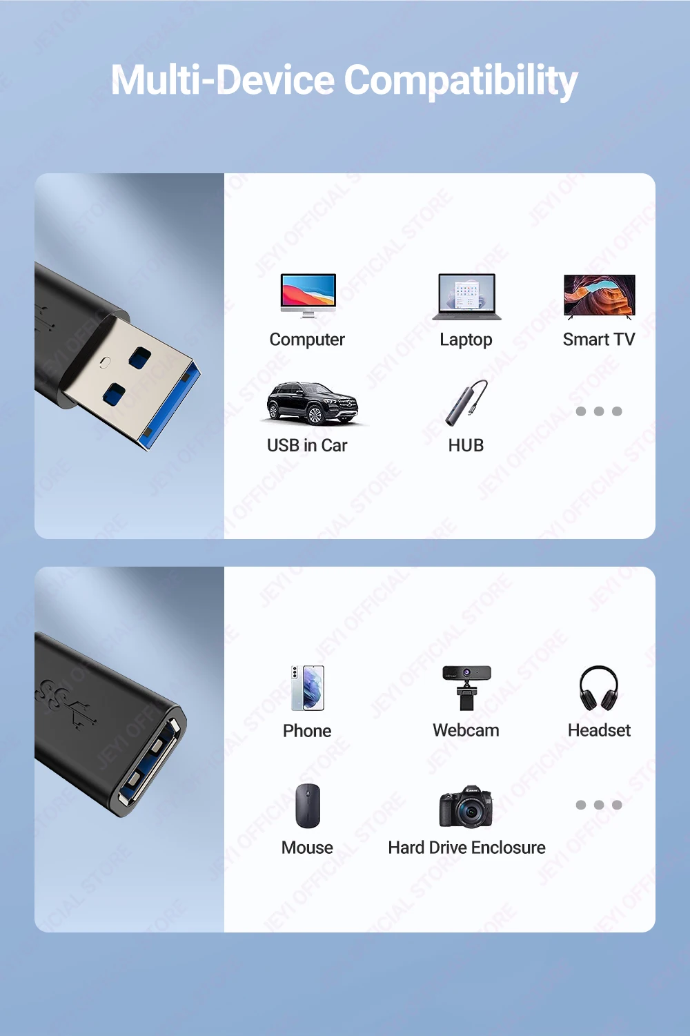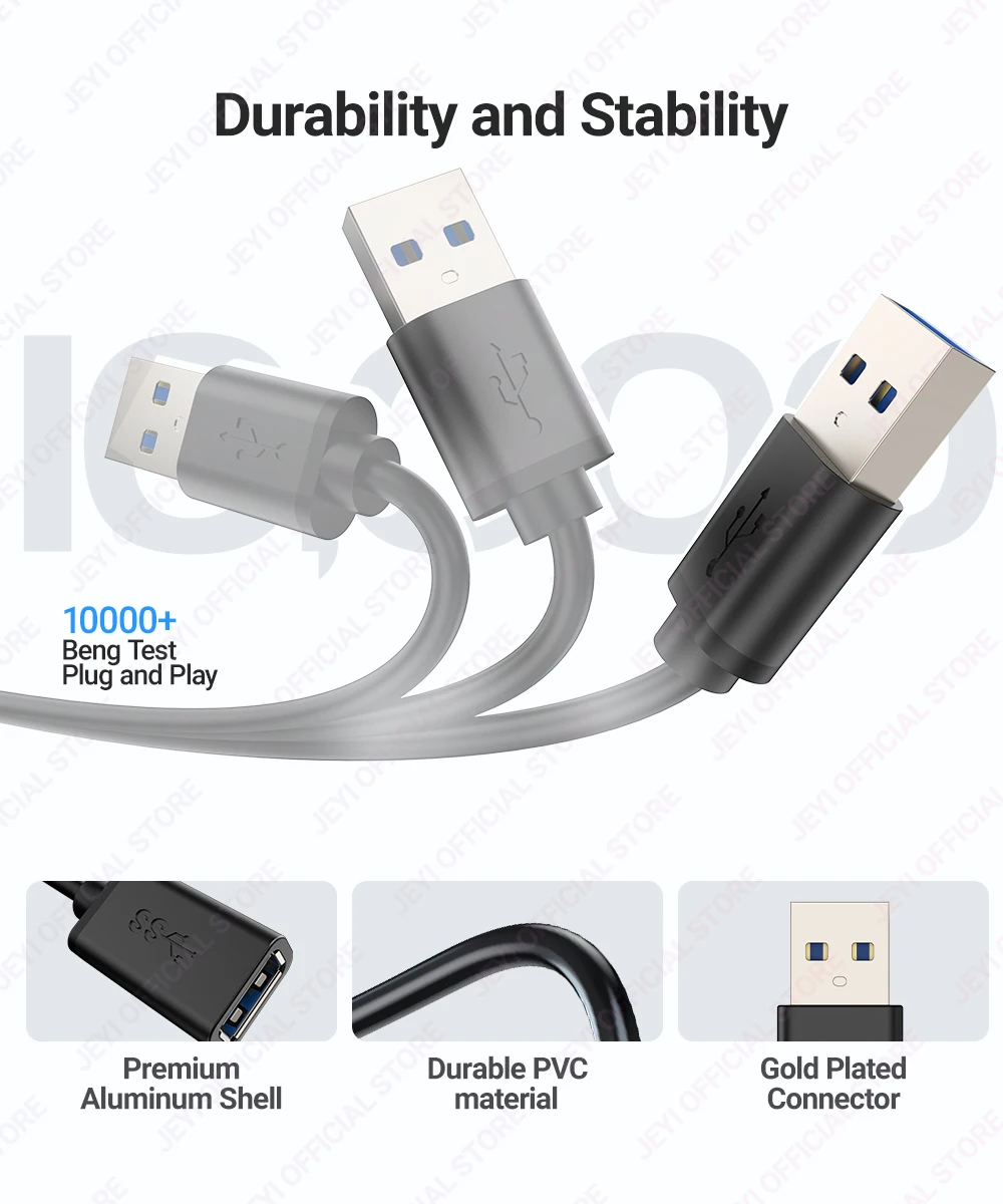 He comprado varios productos JEYI. Son muy buenos con precios bajos y alta calidad. Esta es mi sexta compra de este cable de extensión. La velocidad de transferencia también es estable y rápida.