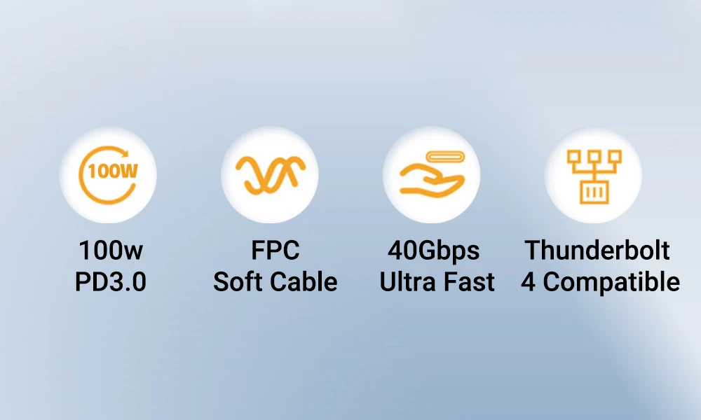 Este cable FPC Soft USB4 de JEYI es compatible con ordenadores portátiles y PC compatibles con Windows Thunderbolt 3/4, y es ideal para 2016 + MacBook Pro, 2017 + iMac, 2020 + MacBook Air, iPad Pro M1 2021, estaciones de acoplamiento compatibles con Thunderbolt, almacenamiento de alta velocidad y dispositivos periféricos.