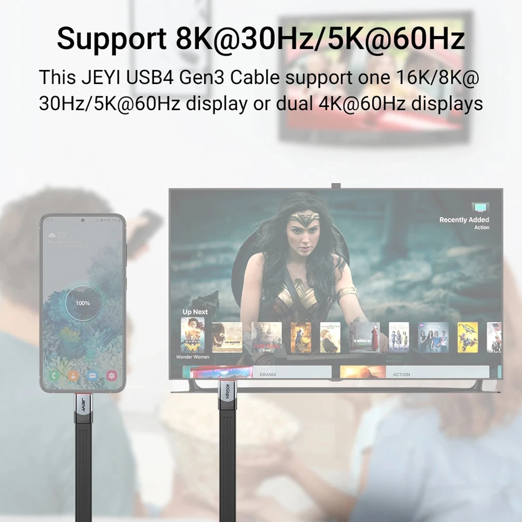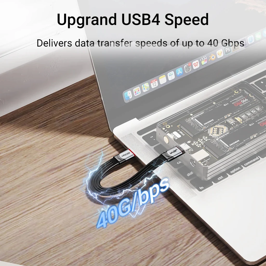 El cable JEYI USB4 ofrece velocidades de transferencia de datos ultrarrápidas de hasta 40Gbps, lo que le permite mover archivos grandes en segundos. Es totalmente compatible con las velocidades y dispositivos USB3.2, 3,1 y 2,0 (la velocidad de transferencia de datos depende de la compatibilidad con su dispositivo).